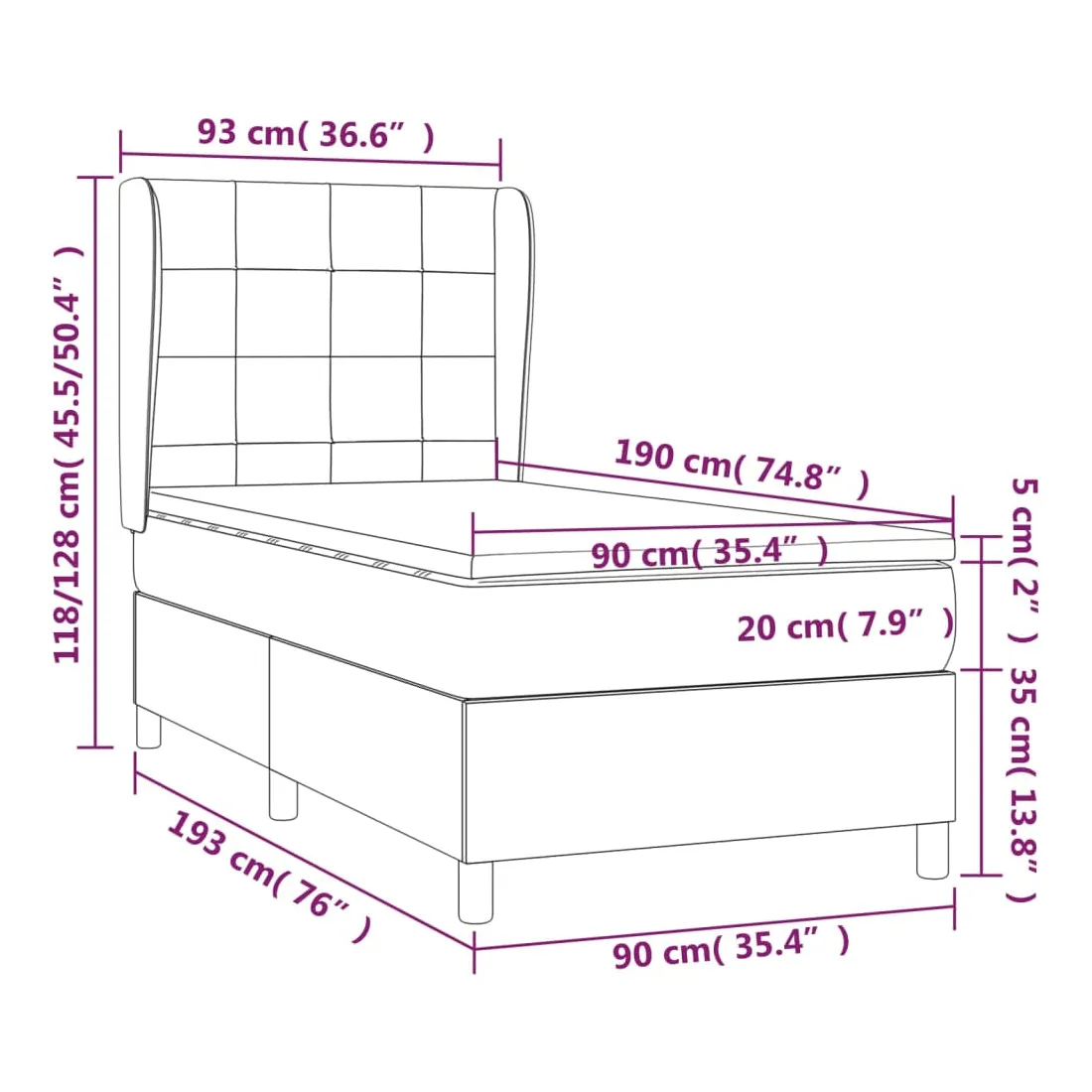 90 x 190 cm
