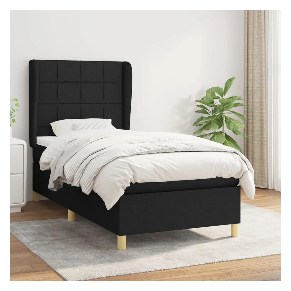 Sommier à lattes de lit avec matelas Noir 100x200 cm Tissu