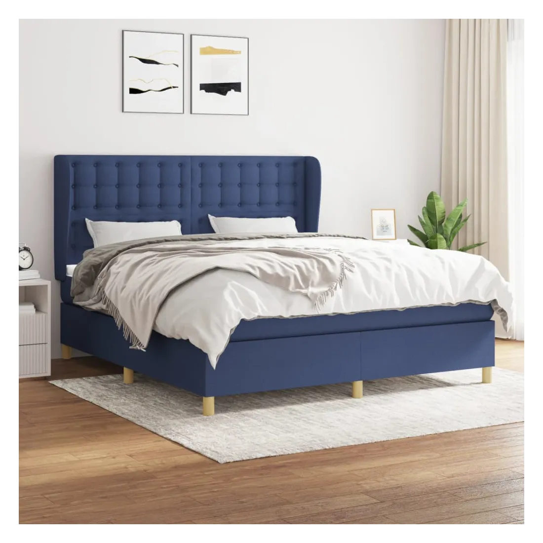 Sommier à lattes de lit avec matelas Bleu 160x200 cm Tissu