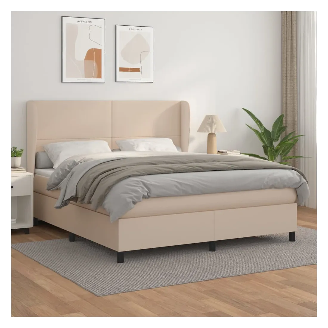 Utilisez ce lit à sommier pour profiter d'une nuit de sommeil réparatrice ! Il vous offre une relaxation maximale et un sommeil agréable. Similicuir durable : le similicuir de qualité supérieure est un matériau très durable. Il est résistant aux taches, ce qui le rend facile à nettoyer avec un chiffon humide. La surface lisse donne également un aspect luxueux et la beauté du cuir véritable. Tête de lit pratique : la tête de lit est réglable en hauteur selon vos préférences. La tête de lit vous offre un excellent soutien du dos lorsque vous êtes assis dans votre lit pour lire ou regarder la télévision. Matelas à ressorts ensachés : le ressort ensaché individuel intégré est connu pour sa très haute qualité tout en assurant un haut niveau de durabilité et d'adaptabilité. Il peut absorber