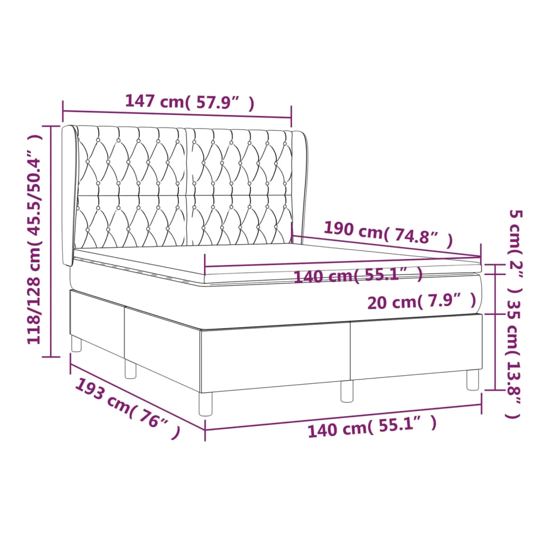 Sommier à lattes de lit avec matelas Noir 140x190 cm Velours