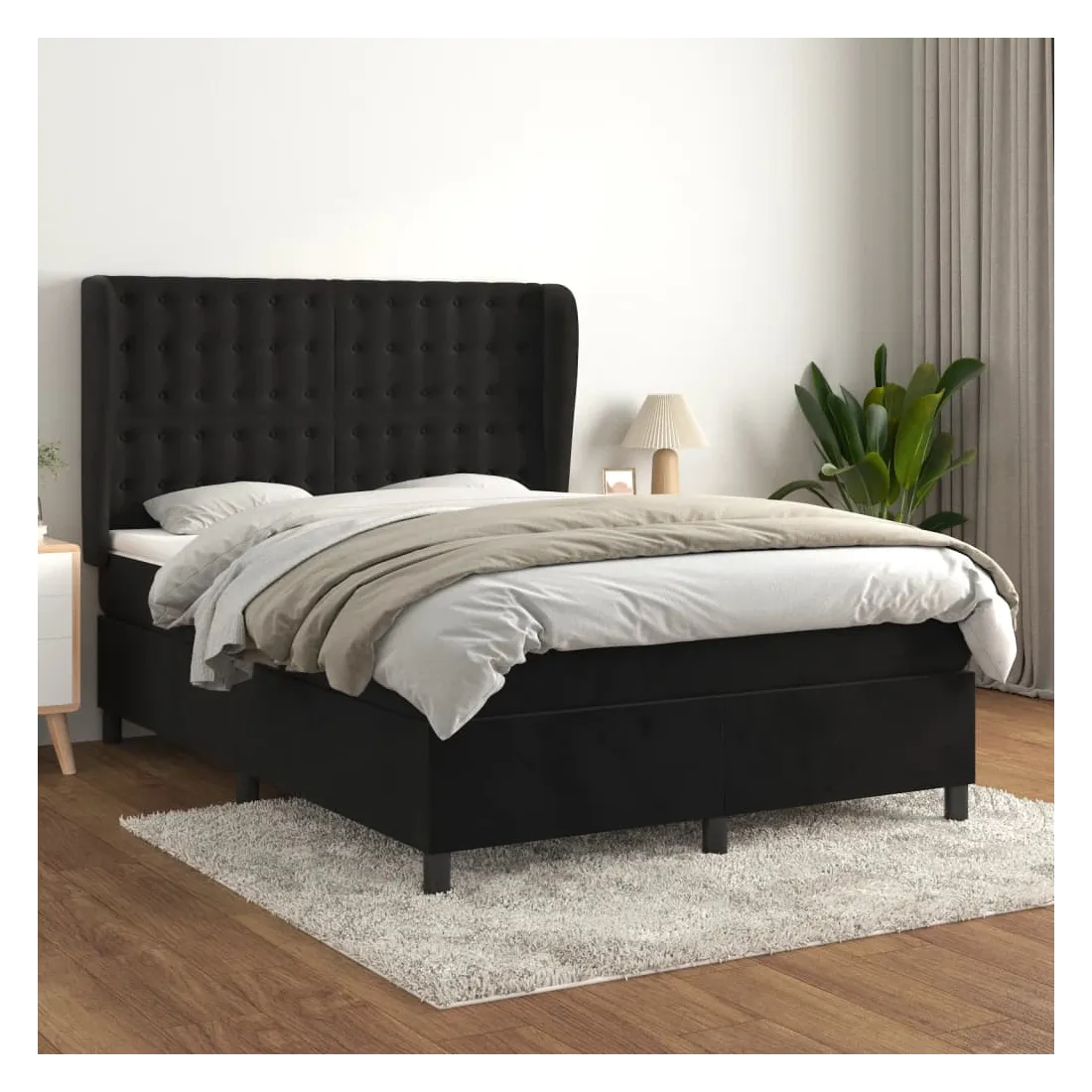Sommier à lattes de lit avec matelas Noir 140x200 cm Velours