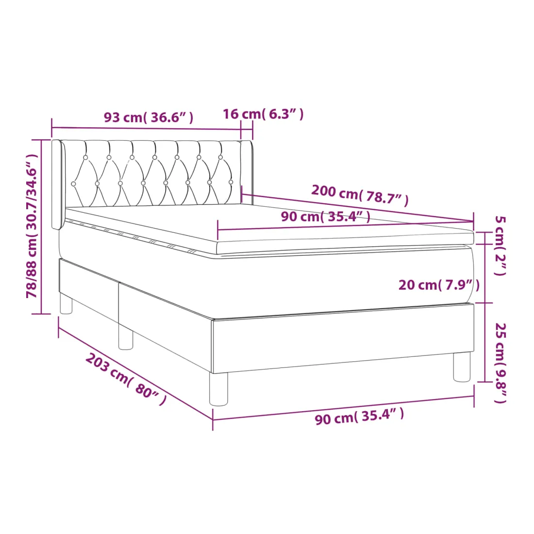 • Dimensions : 90 x 200 x 20 cm (l x L x H)