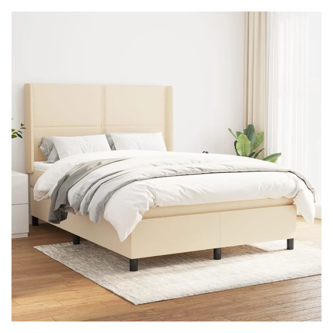Sommier à lattes de lit avec matelas Crème 140x200 cm Tissu