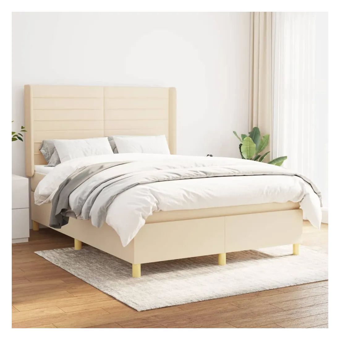 Sommier à lattes de lit avec matelas Crème 140x200 cm Tissu