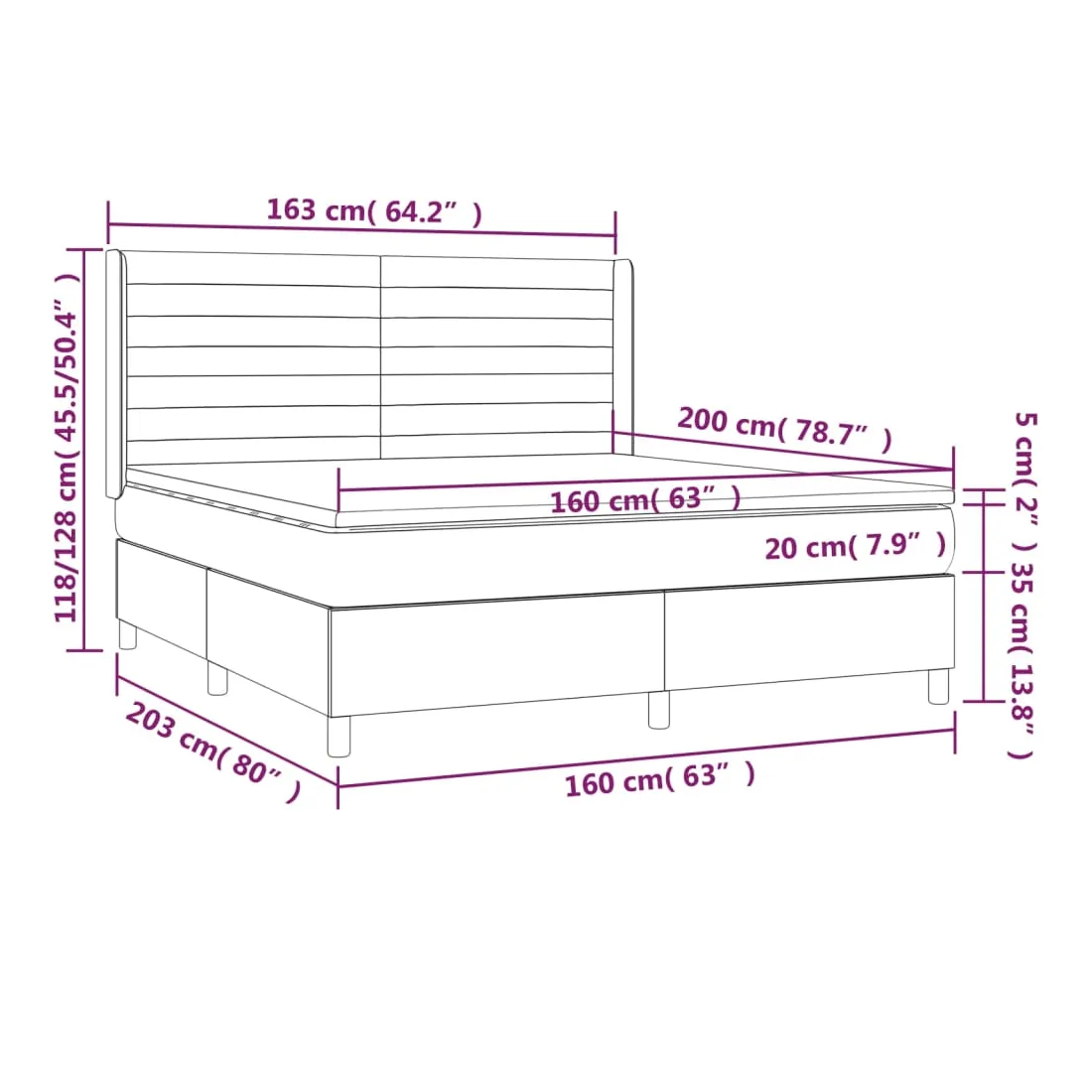 • Dimensions : 203 x 163 x 118/128 cm (L x l x H)