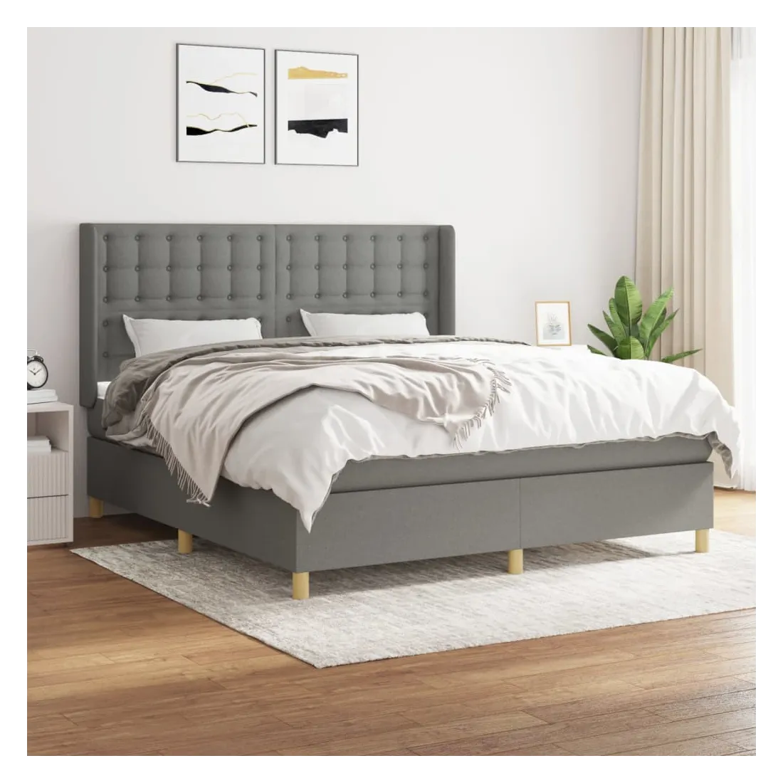 Sommier à lattes de lit avec matelas Gris foncé 180x200cm Tissu