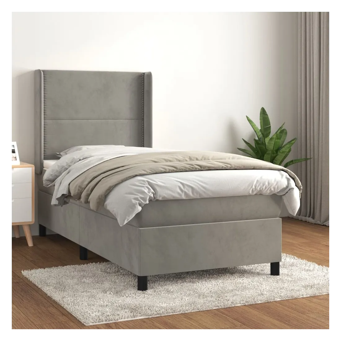 Sommier à lattes de lit et matelas Gris clair 90x200 cm Velours