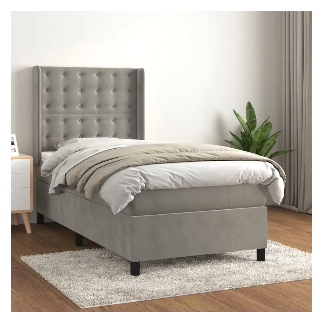 Utilisez ce lit à sommier pour profiter d'une nuit de sommeil réparatrice ! Il vous offre une relaxation maximale et un sommeil agréable. Velours doux : le velours est un tissu doux et luxueux qui se reconnaît à son tas dense de fibres uniformément coupées qui ont une touche lisse. Le tissu en velours présente un toucher doux distinctif, ce qui le rend confortable au toucher.Tête de lit pratique : la tête de lit est réglable en hauteur selon vos préférences. La tête de lit vous offre un excellent soutien du dos lorsque vous êtes assis dans votre lit pour lire ou regarder la télévision.Matelas à ressorts ensachés : le ressort ensaché individuel intégré est connu pour sa très haute qualité tout en assurant un haut niveau de durabilité et d'adaptabilité. Il peut absorber efficacement le bruit et les chocs causés par les sauts et les rotations.Support moyen-dur : ce matelas de lit offre une stabilité accrue et juste le niveau de fermeté sans sacrifier le confort. Il est donc idéal pour les personnes qui dorment sur le dos ou sur le ventre.Protège-matelas doux pour la peau : le protège-matelas est recouvert d'un tissu résistant et doux pour la peau, ce qui le rend souple et confortable. Remarque :Pour des raisons d'hygiène, le matelas ne peut pas être retourné si l'emballage est retiré ou ouvert.Chaque produit est livré avec un manuel de montage dans la boîte pour un montage facile.