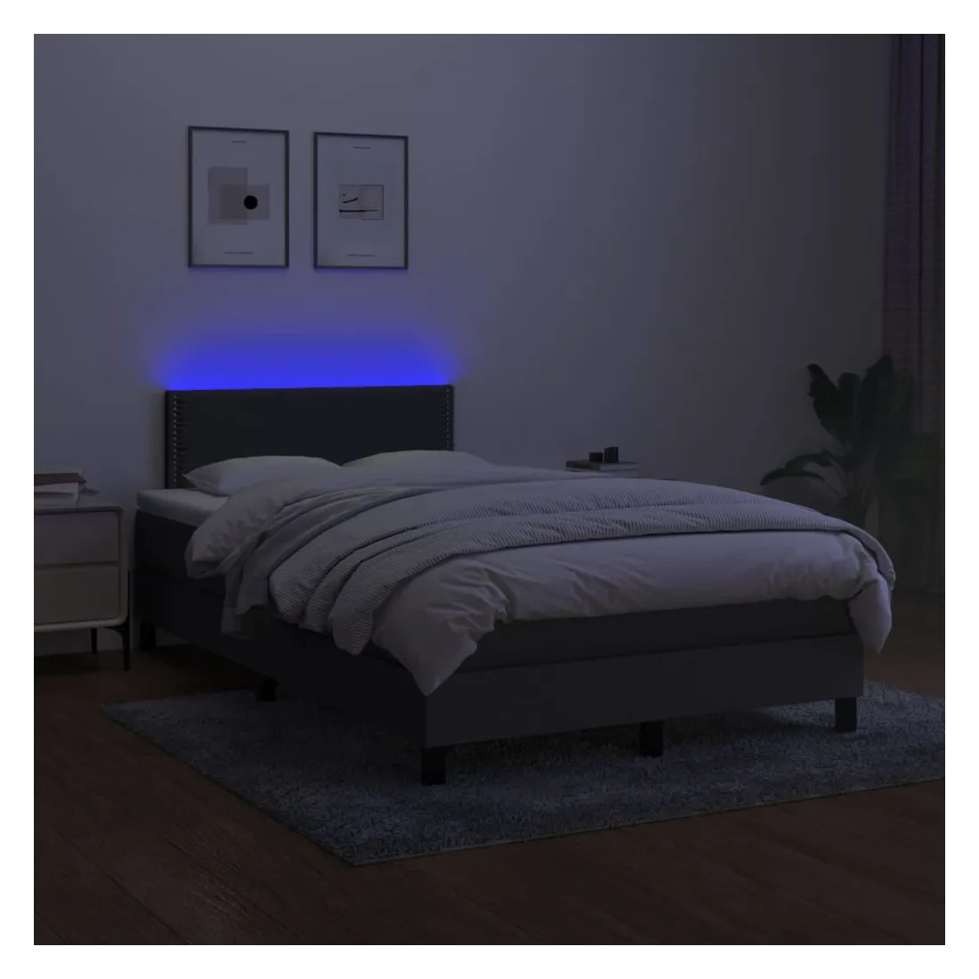 Utilisez ce sommier tapissier avec matelas et LED pour profiter d'un sommeil réparateur ! C'est le point central de votre chambre à coucher. Tissu durable : le tissu présente un aspect simple et épuré, et il est respirant et durable.Tête de lit pratique : la tête de lit est réglable en hauteur selon vos préférences. La tête de lit vous offre un excellent soutien du dos lorsque vous êtes assis dans votre lit pour lire ou regarder la télévision.Bande LED colorée : apportez de l'éclairage dans l'obscurité avec des lumières LED colorées !Matelas à ressorts ensachés : le ressort ensaché individuel intégré est connu pour sa très haute qualité tout en assurant un haut niveau de durabilité et d'adaptabilité. Il peut absorber efficacement le bruit et les chocs causés par les sauts et les rotations.Protège-matelas doux pour la peau : le protège-matelas est recouvert d'un tissu résistant et doux pour la peau, ce qui le rend souple et confortable. Remarque :Pour des raisons d'hygiène, le matelas ne peut pas être retourné si l'emballage est retiré ou ouvert.Chaque produit est livré avec un manuel de montage dans la boîte pour un montage facile.Seule la partie avec un symbole de ciseaux peut être coupée et seule la partie avec l'USB continuera à fonctionner comme avant.Ce produit est doté d'un connecteur USB, mais la source d'alimentation certifiée de USB 5V n'est pas incluse.