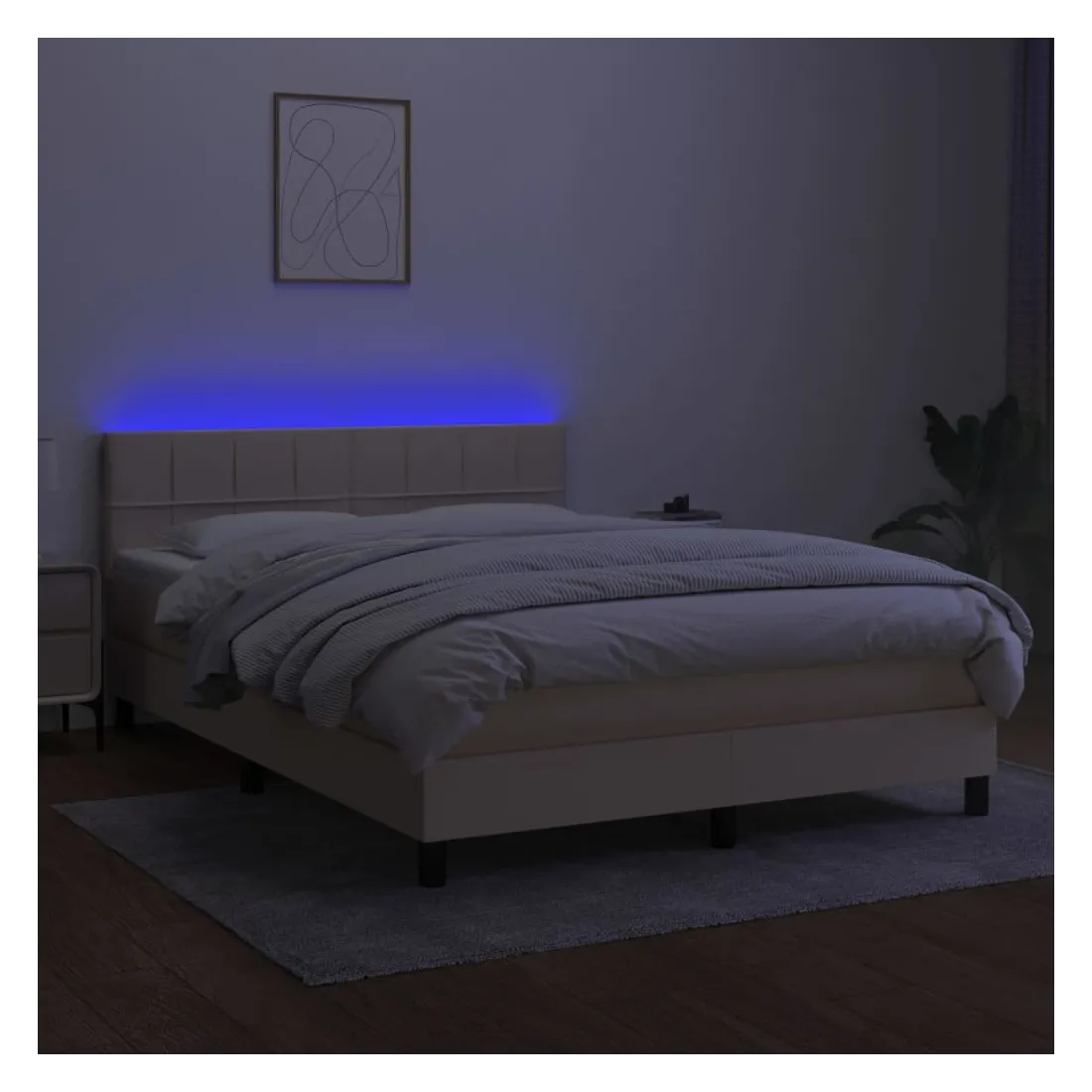 Utilisez ce sommier tapissier avec matelas et LED pour profiter d'un sommeil réparateur ! C'est le point central de votre chambre à coucher. Tissu durable : le tissu présente un aspect simple et épuré, et il est respirant et durable.Tête de lit pratique : la tête de lit est réglable en hauteur selon vos préférences. La tête de lit vous offre un excellent soutien du dos lorsque vous êtes assis dans votre lit pour lire ou regarder la télévision.Bande LED colorée : apportez de l'éclairage dans l'obscurité avec des lumières LED colorées !Matelas à ressorts ensachés : le ressort ensaché individuel intégré est connu pour sa très haute qualité tout en assurant un haut niveau de durabilité et d'adaptabilité. Il peut absorber efficacement le bruit et les chocs causés par les sauts et les rotations.Protège-matelas doux pour la peau : le protège-matelas est recouvert d'un tissu résistant et doux pour la peau, ce qui le rend souple et confortable. Remarque :Pour des raisons d'hygiène, le matelas ne peut pas être retourné si l'emballage est retiré ou ouvert.Chaque produit est livré avec un manuel de montage dans la boîte pour un montage facile.Seule la partie avec un symbole de ciseaux peut être coupée et seule la partie avec l'USB continuera à fonctionner comme avant.Ce produit est doté d'un connecteur USB, mais la source d'alimentation certifiée de USB 5V n'est pas incluse.