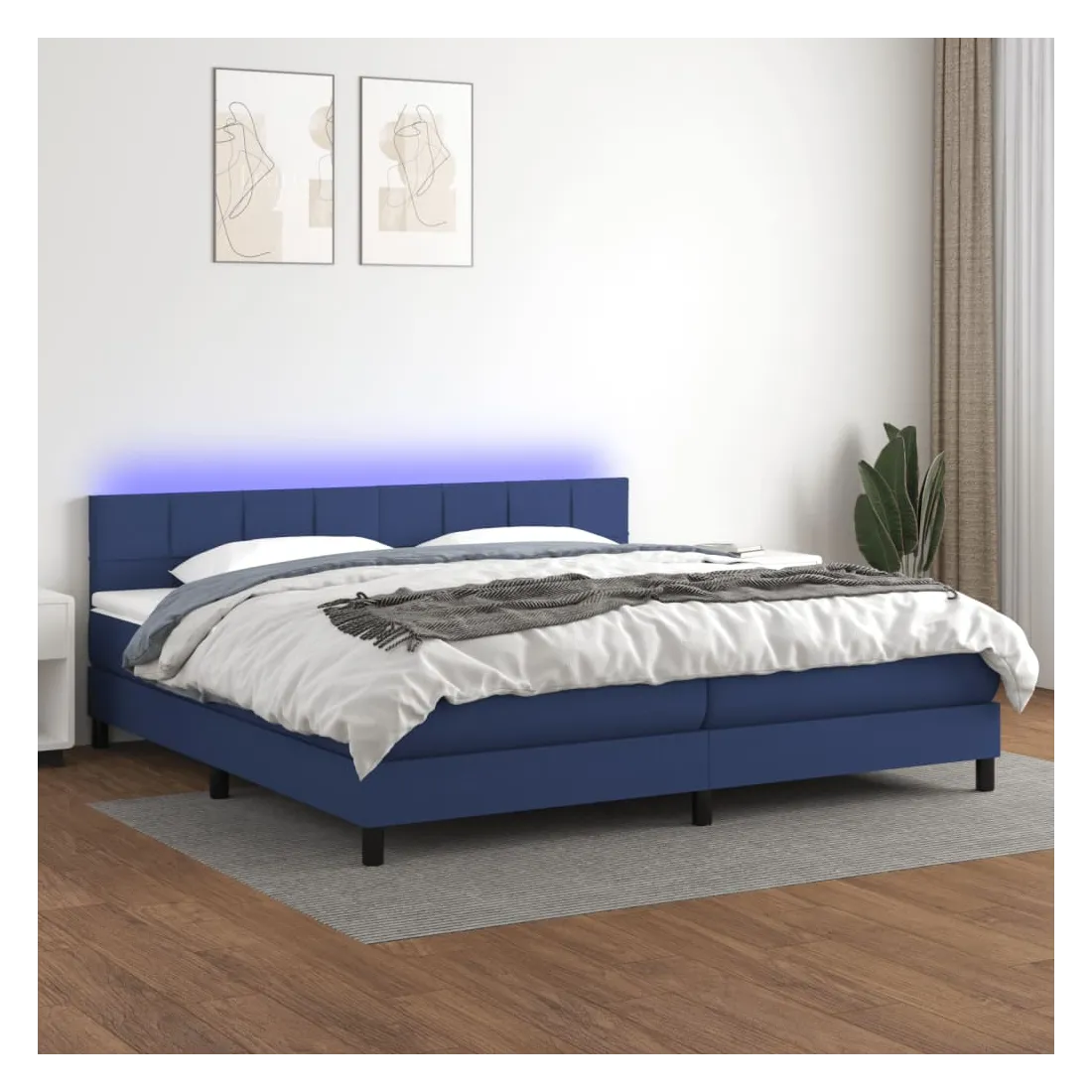Sommier à lattes de lit et matelas et LED Bleu 200x200 cm Tissu