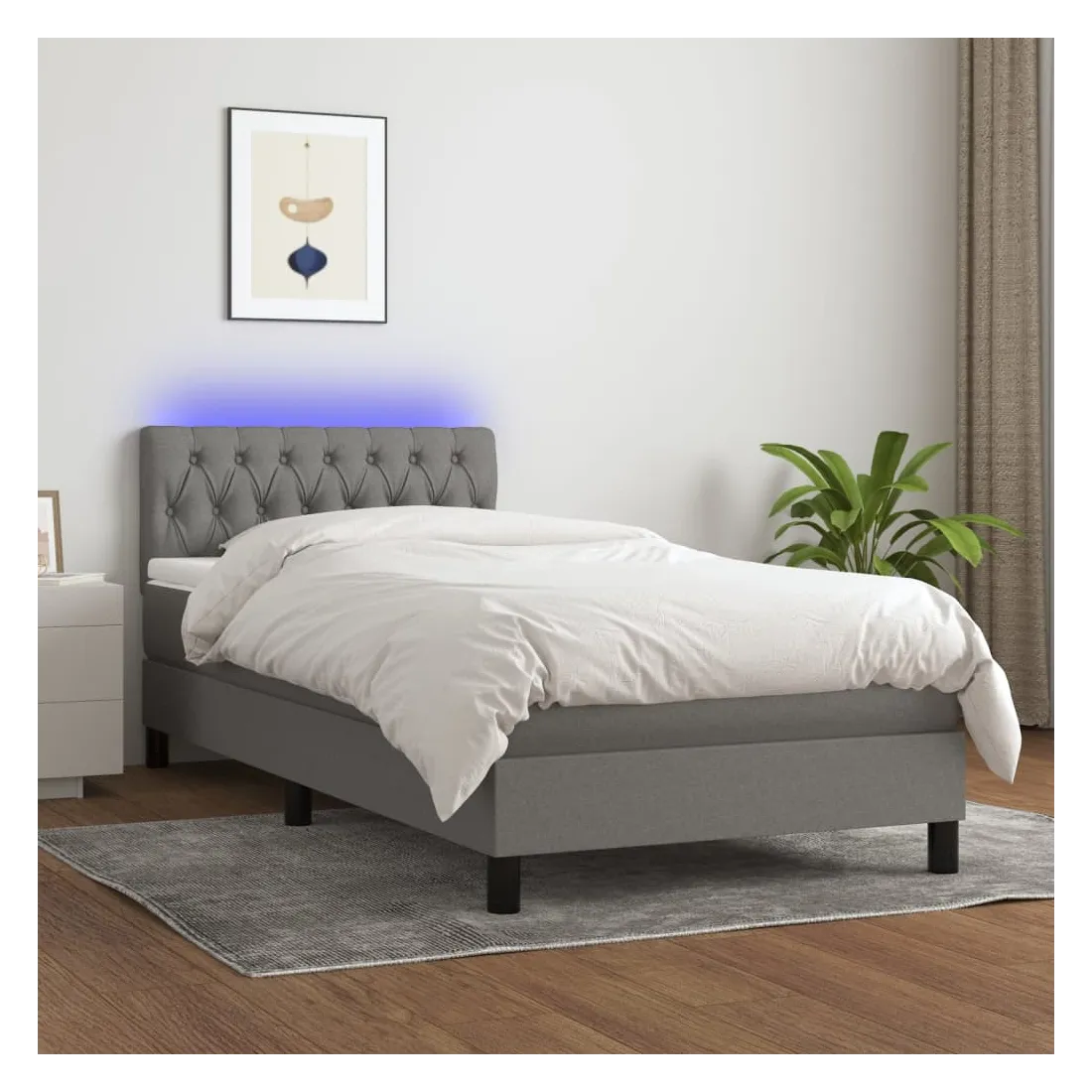 Utilisez ce sommier tapissier avec matelas et LED pour profiter d'un sommeil réparateur ! C'est le point central de votre chambre à coucher. Tissu durable : le tissu présente un aspect simple et épuré, et il est respirant et durable.Tête de lit pratique : la tête de lit est réglable en hauteur selon vos préférences. La tête de lit vous offre un excellent soutien du dos lorsque vous êtes assis dans votre lit pour lire ou regarder la télévision.Bande LED colorée : apportez de l'éclairage dans l'obscurité avec des lumières LED colorées !Matelas à ressorts ensachés : le ressort ensaché individuel intégré est connu pour sa très haute qualité tout en assurant un haut niveau de durabilité et d'adaptabilité. Il peut absorber efficacement le bruit et les chocs causés par les sauts et les rotations.Protège-matelas doux pour la peau : le protège-matelas est recouvert d'un tissu résistant et doux pour la peau, ce qui le rend souple et confortable. Remarque :Pour des raisons d'hygiène, le matelas ne peut pas être retourné si l'emballage est retiré ou ouvert.Chaque produit est livré avec un manuel de montage dans la boîte pour un montage facile.Seule la partie avec un symbole de ciseaux peut être coupée et seule la partie avec l'USB continuera à fonctionner comme avant.Ce produit est doté d'un connecteur USB, mais la source d'alimentation certifiée de USB 5V n'est pas incluse.