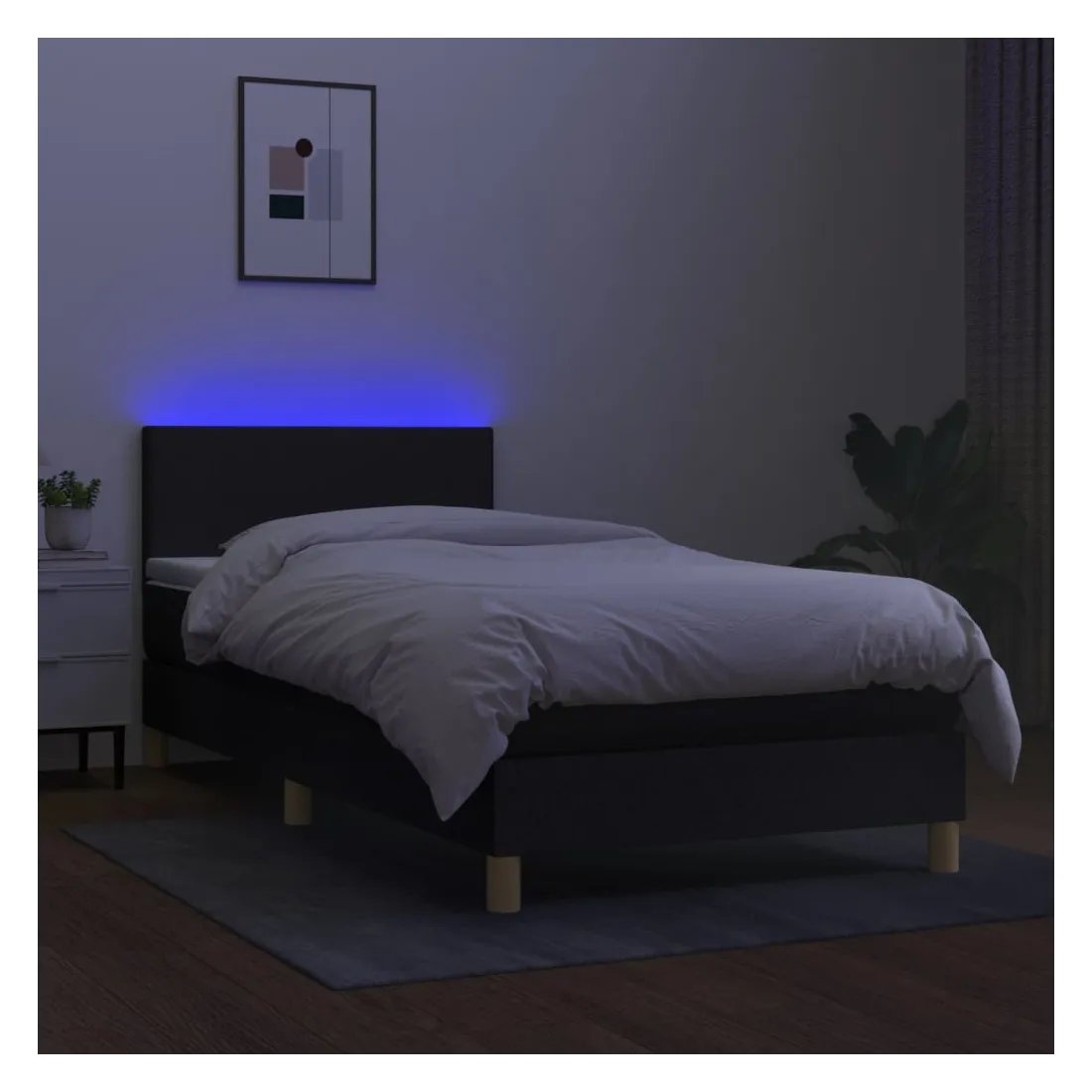 Sommier à lattes de lit avec matelas et LED Noir 90x200cm Tissu