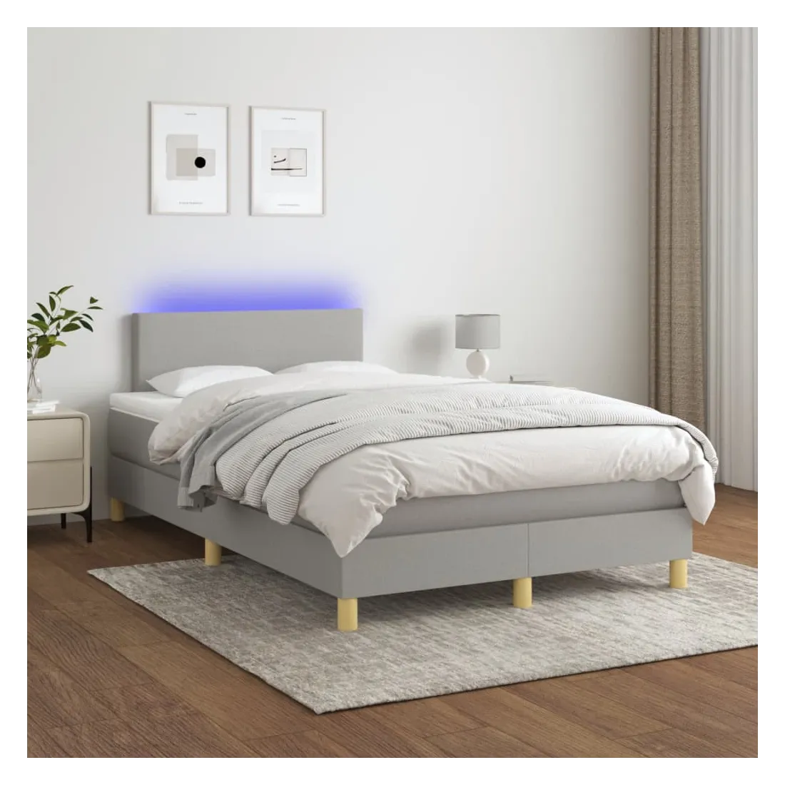 Sommier à lattes de lit matelas LED Gris clair 120x200 cm Tissu