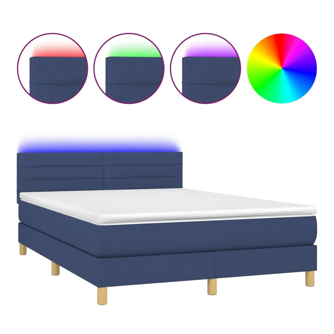 Sommier à lattes de lit avec matelas LED Bleu 140x190 cm Tissu