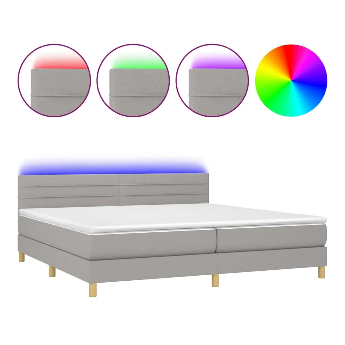 Utilisez ce sommier tapissier avec matelas et LED pour profiter d'un sommeil réparateur ! C'est le point central de votre chambre à coucher. Tissu durable : le tissu présente un aspect simple et épuré, et il est respirant et durable. Tête de lit pratique : la tête de lit est réglable en hauteur selon vos préférences. La tête de lit vous offre un excellent soutien du dos lorsque vous êtes assis dans votre lit pour lire ou regarder la télévision. Bande LED colorée : apportez de l'éclairage dans l'obscurité avec des lumières LED colorées ! Matelas à ressorts ensachés : le ressort ensaché individuel intégré est connu pour sa très haute qualité tout en assurant un haut niveau de durabilité et d'adaptabilité. Il peut absorber efficacement le bruit et les chocs causés par les sauts et les rot
