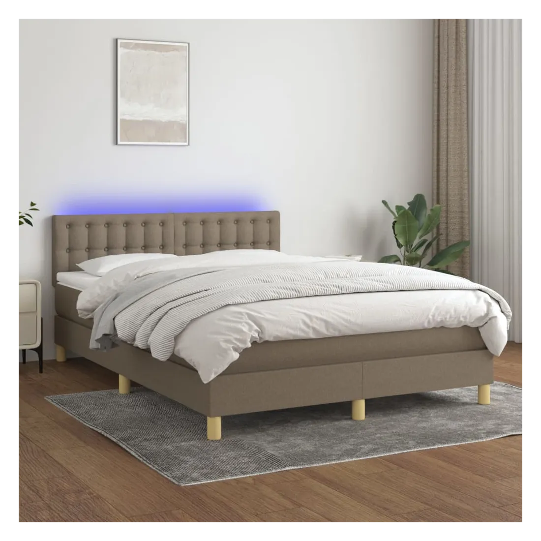 Sommier à lattes de lit avec matelas LED Taupe 140x200 cm Tissu