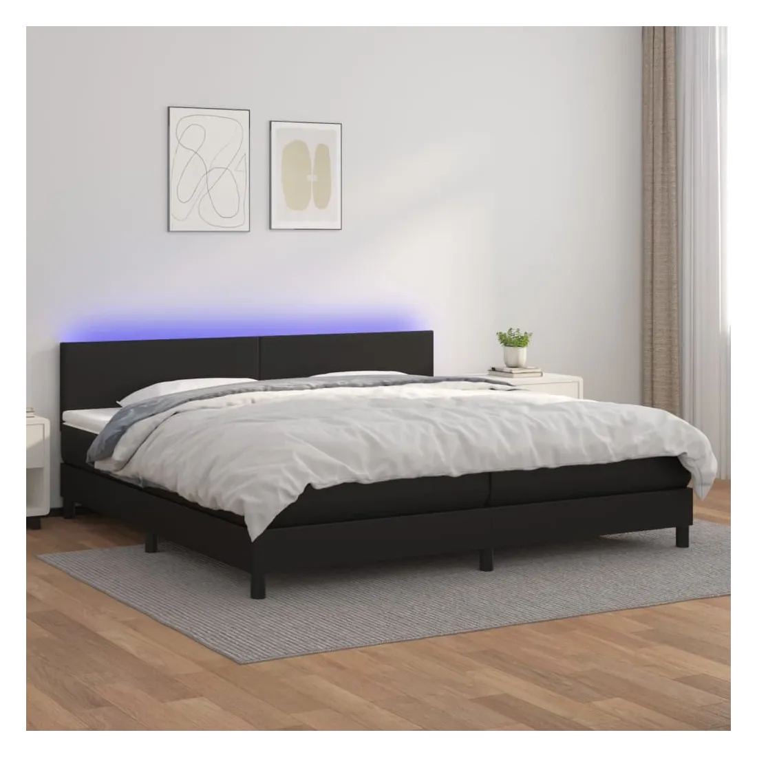 Utilisez ce sommier tapissier avec matelas et LED pour profiter d'un sommeil réparateur ! C'est le point central de votre chambre à coucher. Similicuir durable : le similicuir de qualité supérieure est un matériau très durable. Il est résistant aux taches, ce qui le rend facile à nettoyer avec un chiffon humide. La surface lisse donne également un aspect luxueux et la beauté du cuir véritable.Tête de lit pratique : la tête de lit est réglable en hauteur selon vos préférences. La tête de lit vous offre un excellent soutien du dos lorsque vous êtes assis dans votre lit pour lire ou regarder la télévision.Bande LED colorée : apportez de l'éclairage dans l'obscurité avec des lumières LED colorées !Matelas à ressorts ensachés : le ressort ensaché individuel intégré est connu pour sa très haute qualité tout en assurant un haut niveau de durabilité et d'adaptabilité. Il peut absorber efficacement le bruit et les chocs causés par les sauts et les rotations.Protège-matelas doux pour la peau : le protège-matelas est recouvert d'un tissu résistant et doux pour la peau, ce qui le rend souple et confortable. Remarque :Pour des raisons d'hygiène, le matelas ne peut pas être retourné si l'emballage est retiré ou ouvert.Chaque produit est livré avec un manuel de montage dans la boîte pour un montage facile.Seule la partie avec un symbole de ciseaux peut être coupée et seule la partie avec l'USB continuera à fonctionner comme avant.Ce produit est doté d'un connecteur USB, mais la source d'alimentation certifiée de USB 5V n'est pas incluse.