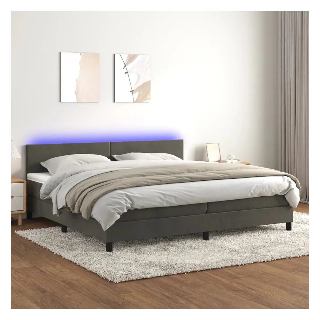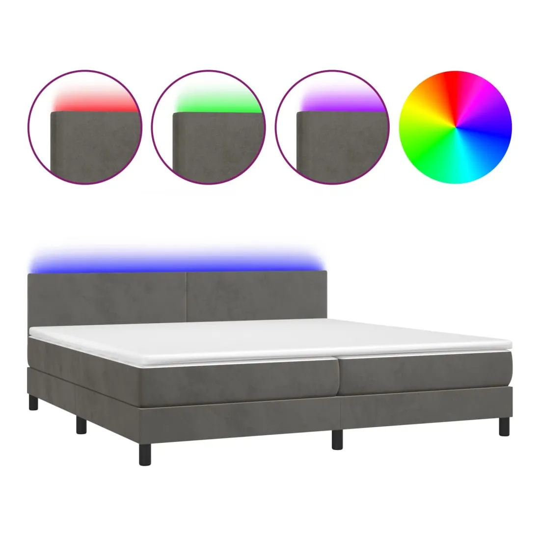 vidaXLUtilisez ce sommier tapissier avec matelas et LED pour profiter d'un sommeil réparateur ! C'est le point central de votre chambre à coucher. Velours doux : le velours est un tissu doux et luxueux qui se reconnaît à son tas dense de fibres uniformément coupées qui ont une touche lisse. Le tissu en velours présente un toucher doux distinctif, ce qui le rend confortable au toucher.Tête de lit pratique : la tête de lit est réglable en hauteur selon vos préférences. La tête de lit vous offre un excellent soutien du dos lorsque vous êtes assis dans votre lit pour lire ou regarder la télévision.Bande LED colorée : apportez de l'éclairage dans l'obscurité avec des lumières LED colorées !Matelas à ressorts ensachés : le ressort ensaché individuel intégré est connu pour sa très haute qualité tout en assurant un haut niveau de durabilité et d'adaptabilité. Il peut absorber efficacement le bruit et les chocs causés par les sauts et les rotations.Protège-matelas doux pour la peau : le protège-matelas est recouvert d'un tissu résistant et doux pour la peau, ce qui le rend souple et confortable. Remarque :Pour des raisons d'hygiène, le matelas ne peut pas être retourné si l'emballage est retiré ou ouvert.Chaque produit est livré avec un manuel de montage dans la boîte pour un montage facile.Seule la partie avec un symbole de ciseaux peut être coupée et seule la partie avec l'USB continuera à fonctionner comme avant.Ce produit est doté d'un connecteur USB, mais la source d'alimentation certifiée de USB 5V n'est pas incluse.