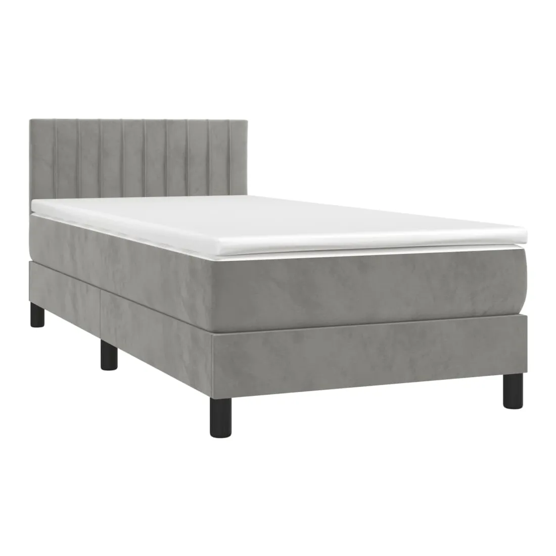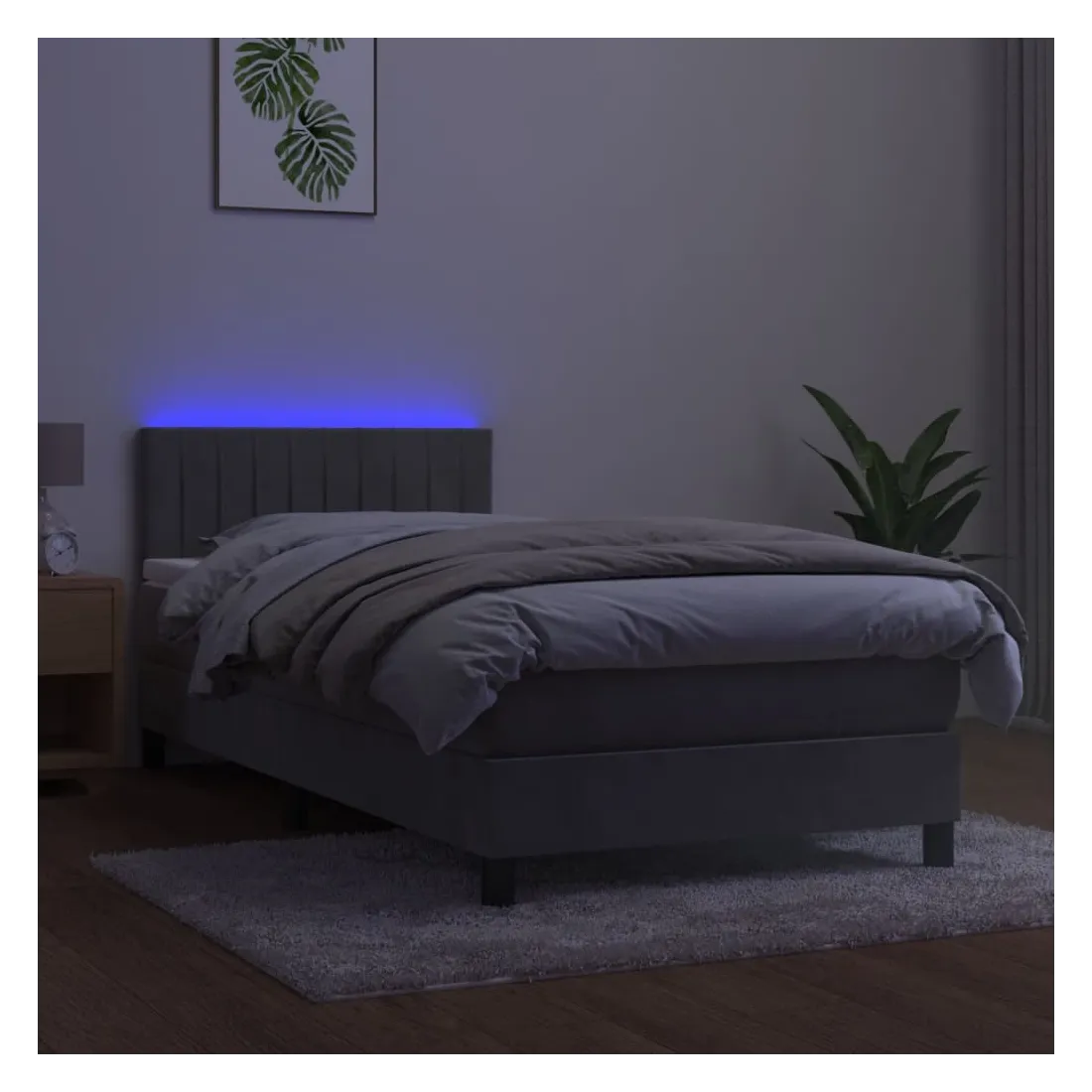 Utilisez ce sommier tapissier avec matelas et LED pour profiter d'un sommeil réparateur ! C'est le point central de votre chambre à coucher. Velours doux : le velours est un tissu doux et luxueux qui se reconnaît à son tas dense de fibres uniformément coupées qui ont une touche lisse. Le tissu en velours présente un toucher doux distinctif, ce qui le rend confortable au toucher.Tête de lit pratique : la tête de lit est réglable en hauteur selon vos préférences. La tête de lit vous offre un excellent soutien du dos lorsque vous êtes assis dans votre lit pour lire ou regarder la télévision.Bande LED colorée : apportez de l'éclairage dans l'obscurité avec des lumières LED colorées !Matelas à ressorts ensachés : le ressort ensaché individuel intégré est connu pour sa très haute qualité tout en assurant un haut niveau de durabilité et d'adaptabilité. Il peut absorber efficacement le bruit et les chocs causés par les sauts et les rotations.Protège-matelas doux pour la peau : le protège-matelas est recouvert d'un tissu résistant et doux pour la peau, ce qui le rend souple et confortable. Remarque :Pour des raisons d'hygiène, le matelas ne peut pas être retourné si l'emballage est retiré ou ouvert.Chaque produit est livré avec un manuel de montage dans la boîte pour un montage facile.Seule la partie avec un symbole de ciseaux peut être coupée et seule la partie avec l'USB continuera à fonctionner comme avant.Ce produit est doté d'un connecteur USB, mais la source d'alimentation certifiée de USB 5V n'est pas incluse.