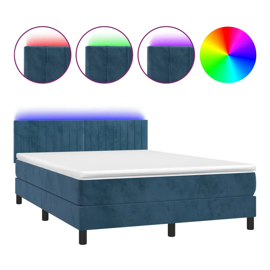 Sommier à lattes de lit avec matelas LED Bleu foncé 140x190 cm