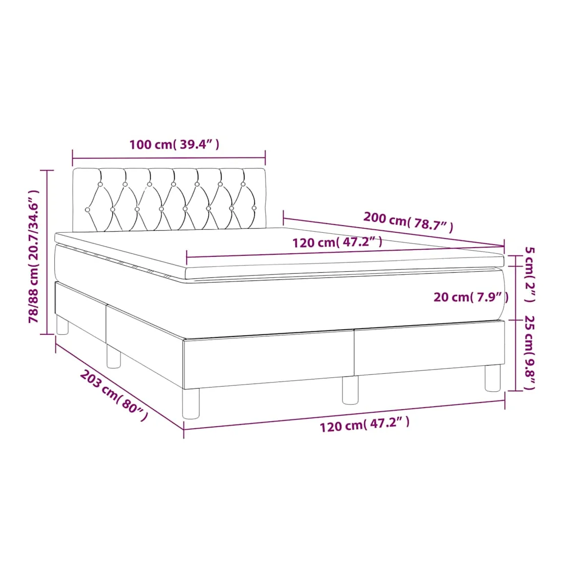 • Dimensions : 120 x 200 x 20 cm (l x L x H)