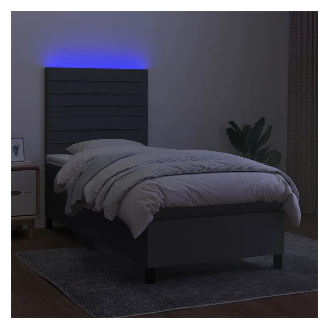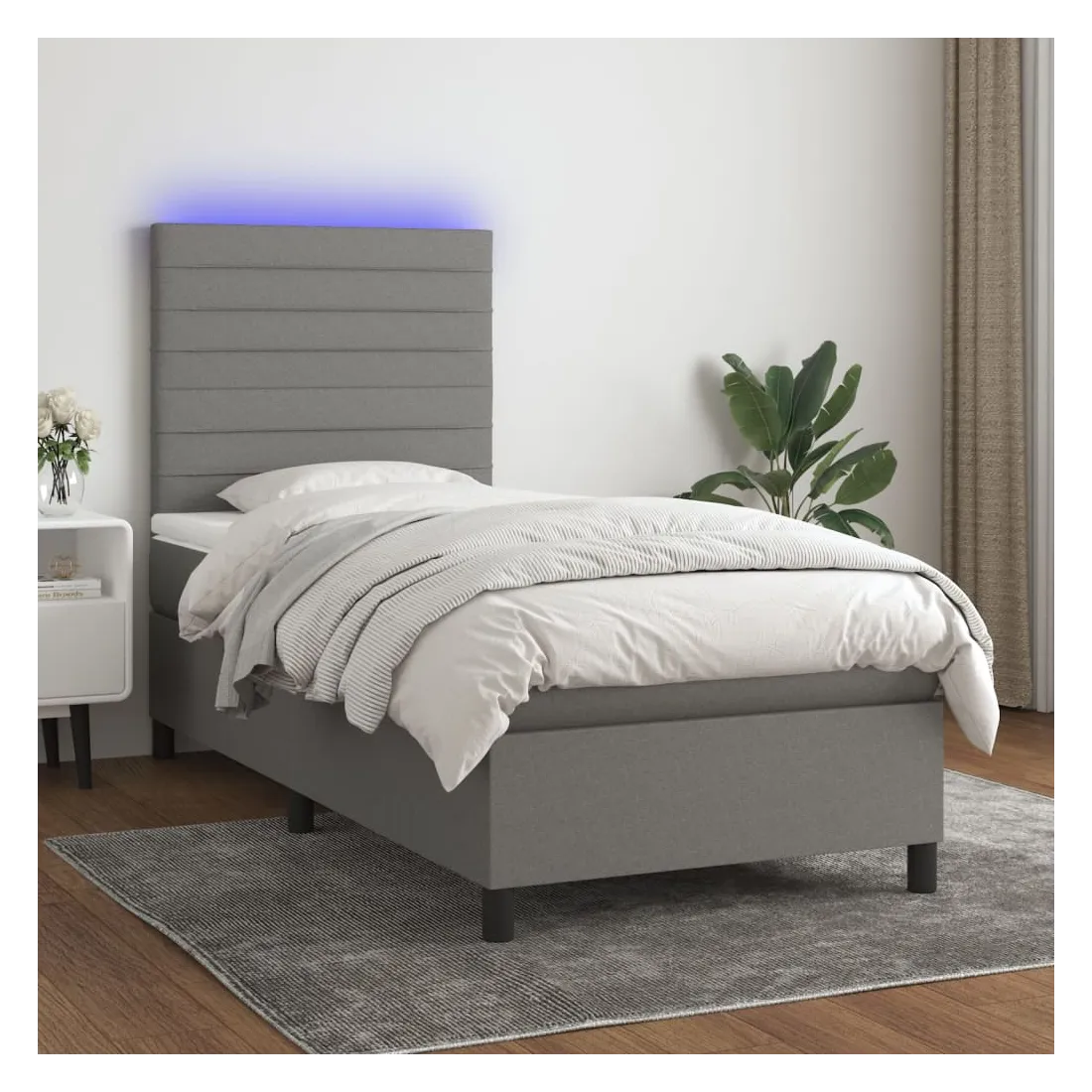 Sommier à lattes de lit et matelas et LED Gris foncé 100x200 cm