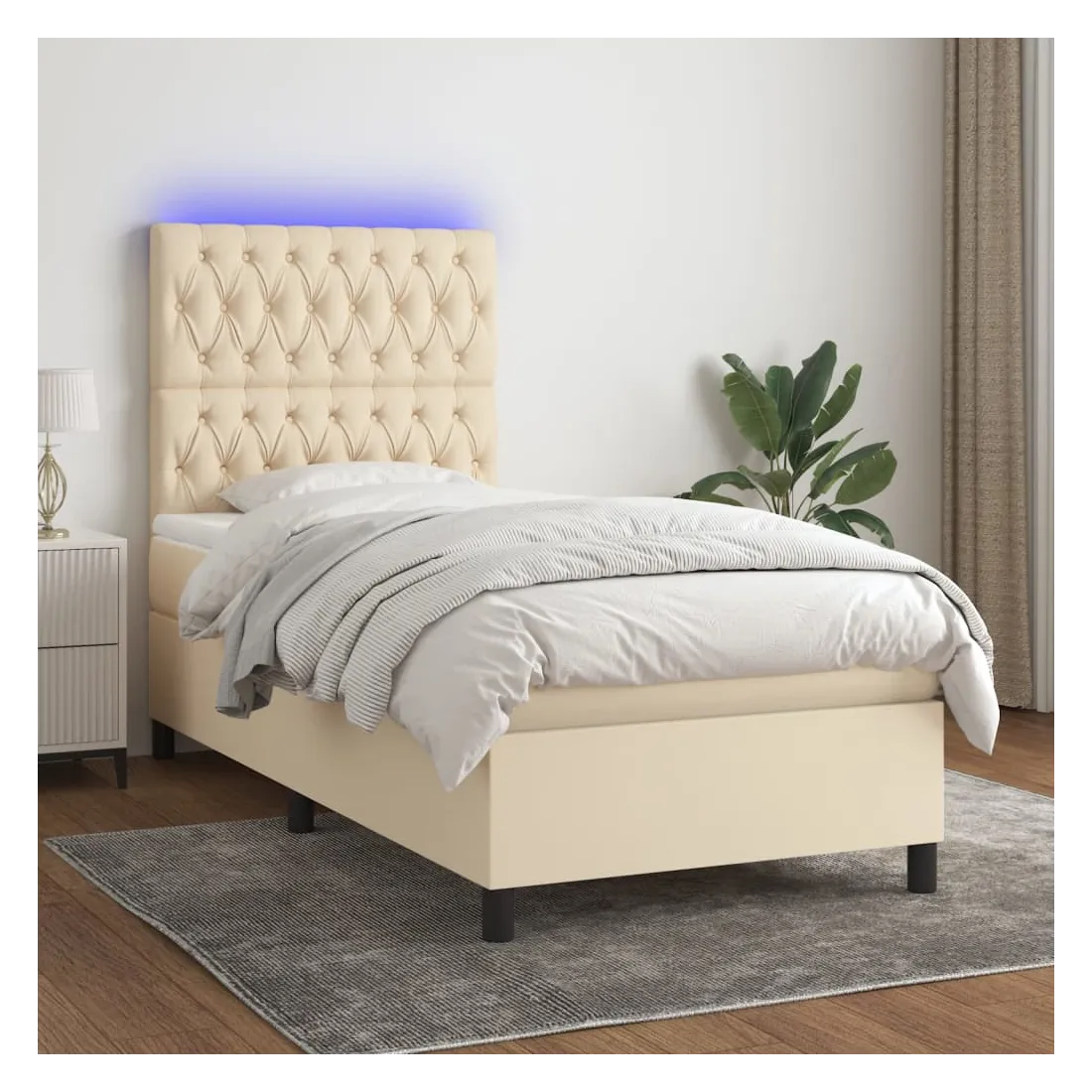 vidaXLUtilisez ce sommier tapissier avec matelas et LED pour profiter d'un sommeil réparateur ! C'est le point central de votre chambre à coucher. Tissu durable : le tissu présente un aspect simple et épuré, et il est respirant et durable.Tête de lit pratique : la tête de lit est réglable en hauteur selon vos préférences. La tête de lit vous offre un excellent soutien du dos lorsque vous êtes assis dans votre lit pour lire ou regarder la télévision.Bande LED colorée : apportez de l'éclairage dans l'obscurité avec des lumières LED colorées !Matelas à ressorts ensachés : le ressort ensaché individuel intégré est connu pour sa très haute qualité tout en assurant un haut niveau de durabilité et d'adaptabilité. Il peut absorber efficacement le bruit et les chocs causés par les sauts et les rotations.Protège-matelas doux pour la peau : le protège-matelas est recouvert d'un tissu résistant et doux pour la peau, ce qui le rend souple et confortable. Remarque :Pour des raisons d'hygiène, le matelas ne peut pas être retourné si l'emballage est retiré ou ouvert.Seule la partie avec un symbole de ciseaux peut être coupée et seule la partie avec l'USB continuera à fonctionner comme avant.Chaque produit est livré avec un manuel de montage dans la boîte pour un montage facile.Ce produit est doté d'un connecteur USB, mais la source d'alimentation certifiée de USB 5V n'est pas incluse.