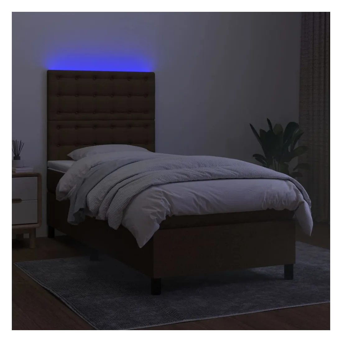 Utilisez ce sommier tapissier avec matelas et LED pour profiter d'un sommeil réparateur ! C'est le point central de votre chambre à coucher. Tissu durable : le tissu présente un aspect simple et épuré, et il est respirant et durable.Tête de lit pratique : la tête de lit est réglable en hauteur selon vos préférences. La tête de lit vous offre un excellent soutien du dos lorsque vous êtes assis dans votre lit pour lire ou regarder la télévision.Bande LED colorée : apportez de l'éclairage dans l'obscurité avec des lumières LED colorées !Matelas à ressorts ensachés : le ressort ensaché individuel intégré est connu pour sa très haute qualité tout en assurant un haut niveau de durabilité et d'adaptabilité. Il peut absorber efficacement le bruit et les chocs causés par les sauts et les rotations.Protège-matelas doux pour la peau : le protège-matelas est recouvert d'un tissu résistant et doux pour la peau, ce qui le rend souple et confortable. Remarque :Pour des raisons d'hygiène, le matelas ne peut pas être retourné si l'emballage est retiré ou ouvert.Seule la partie avec un symbole de ciseaux peut être coupée et seule la partie avec l'USB continuera à fonctionner comme avant.Chaque produit est livré avec un manuel de montage dans la boîte pour un montage facile.Ce produit est doté d'un connecteur USB, mais la source d'alimentation certifiée de USB 5V n'est pas incluse.