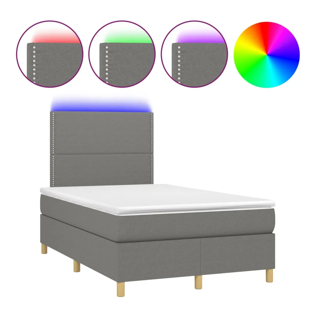 Utilisez ce sommier tapissier avec matelas et LED pour profiter d'un sommeil réparateur ! C'est le point central de votre chambre à coucher. Tissu durable : le tissu présente un aspect simple et épuré, et il est respirant et durable.Tête de lit pratique : la tête de lit est réglable en hauteur selon vos préférences. La tête de lit vous offre un excellent soutien du dos lorsque vous êtes assis dans votre lit pour lire ou regarder la télévision.Bande LED colorée : apportez de l'éclairage dans l'obscurité avec des lumières LED colorées !Matelas à ressorts ensachés : le ressort ensaché individuel intégré est connu pour sa très haute qualité tout en assurant un haut niveau de durabilité et d'adaptabilité. Il peut absorber efficacement le bruit et les chocs causés par les sauts et les rotations.Protège-matelas doux pour la peau : le protège-matelas est recouvert d'un tissu résistant et doux pour la peau, ce qui le rend souple et confortable. Remarque :Pour des raisons d'hygiène, le matelas ne peut pas être retourné si l'emballage est retiré ou ouvert.Seule la partie avec un symbole de ciseaux peut être coupée et seule la partie avec l'USB continuera à fonctionner comme avant.Chaque produit est livré avec un manuel de montage dans la boîte pour un montage facile.Ce produit est doté d'un connecteur USB, mais la source d'alimentation certifiée de USB 5V n'est pas incluse.