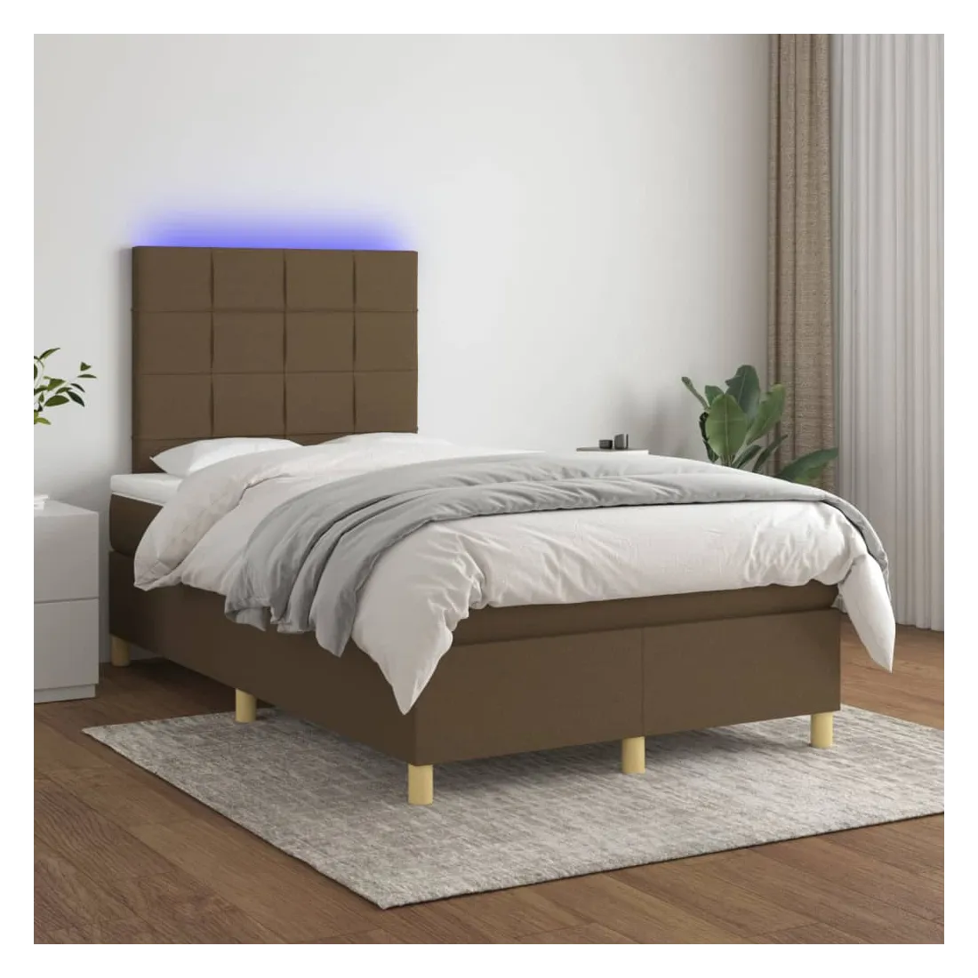 Sommier à lattes de lit matelas et LED Marron foncé 120x200 cm