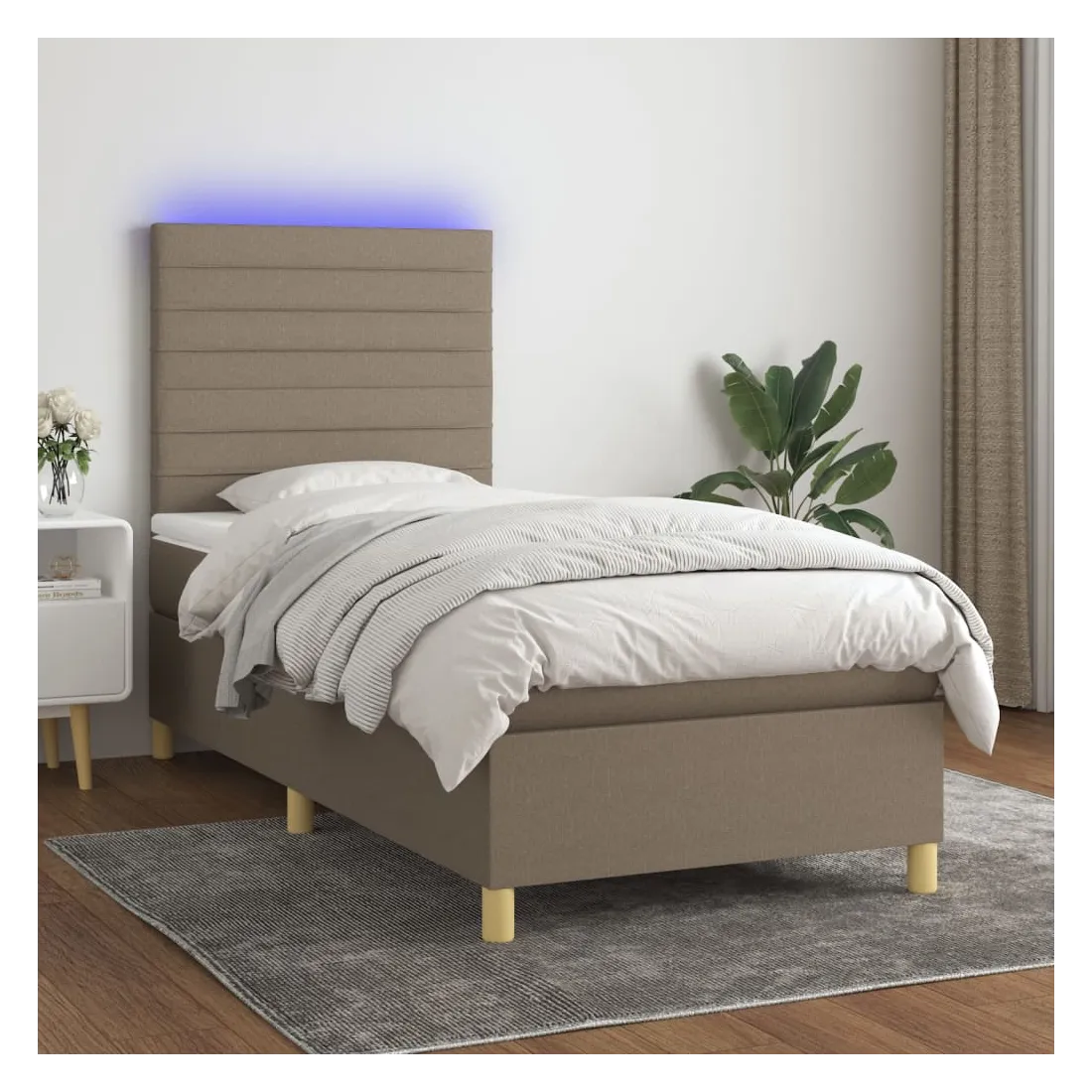 Sommier à lattes de lit et matelas et LED Taupe 80x200 cm Tissu