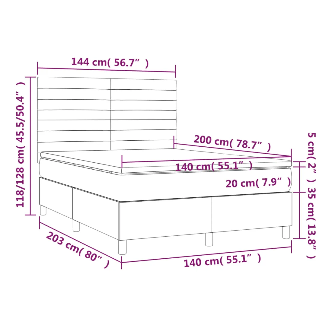 • Dimensions : 140 x 200 x 20 cm (l x L x H)