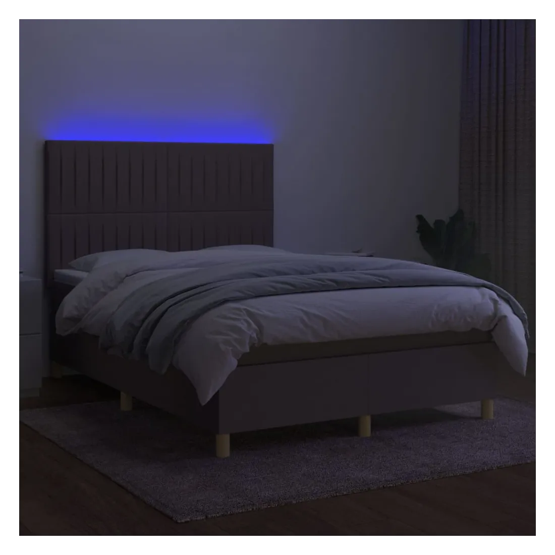 Sommier à lattes de lit et matelas et LED Taupe 140x200cm Tissu