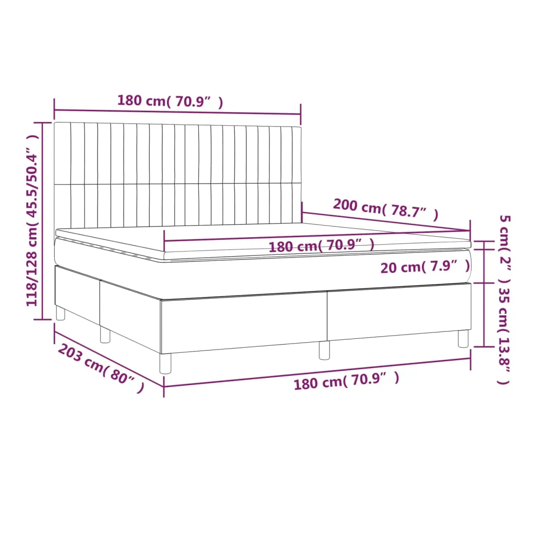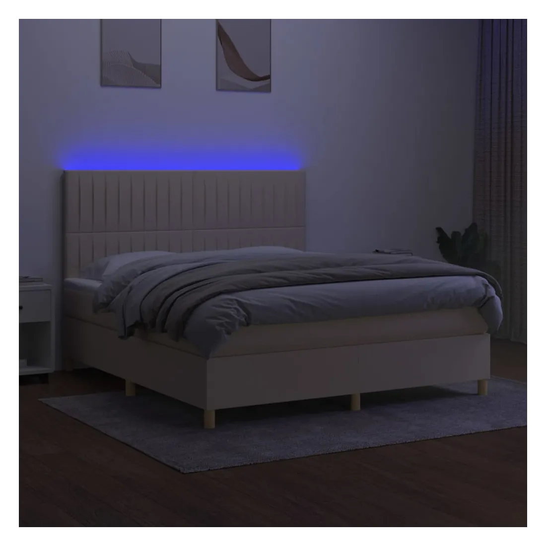 vidaXLUtilisez ce sommier tapissier avec matelas et LED pour profiter d'un sommeil réparateur ! C'est le point central de votre chambre à coucher. Tissu durable : le tissu présente un aspect simple et épuré, et il est respirant et durable.Tête de lit pratique : la tête de lit est réglable en hauteur selon vos préférences. La tête de lit vous offre un excellent soutien du dos lorsque vous êtes assis dans votre lit pour lire ou regarder la télévision.Bande LED colorée : apportez de l'éclairage dans l'obscurité avec des lumières LED colorées !Matelas à ressorts ensachés : le ressort ensaché individuel intégré est connu pour sa très haute qualité tout en assurant un haut niveau de durabilité et d'adaptabilité. Il peut absorber efficacement le bruit et les chocs causés par les sauts et les rotations.Protège-matelas doux pour la peau : le protège-matelas est recouvert d'un tissu résistant et doux pour la peau, ce qui le rend souple et confortable. Remarque :Pour des raisons d'hygiène, le matelas ne peut pas être retourné si l'emballage est retiré ou ouvert.Seule la partie avec un symbole de ciseaux peut être coupée et seule la partie avec l'USB continuera à fonctionner comme avant.Chaque produit est livré avec un manuel de montage dans la boîte pour un montage facile.Ce produit est doté d'un connecteur USB, mais la source d'alimentation certifiée de USB 5V n'est pas incluse.