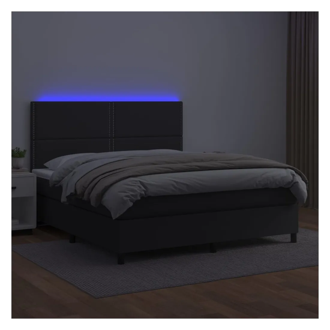 Utilisez ce sommier tapissier avec matelas et LED pour profiter d'un sommeil réparateur ! C'est le point central de votre chambre à coucher. Similicuir durable : le similicuir de qualité supérieure est un matériau très durable. Il est résistant aux taches, ce qui le rend facile à nettoyer avec un chiffon humide. La surface lisse donne également un aspect luxueux et la beauté du cuir véritable.Tête de lit pratique : la tête de lit est réglable en hauteur selon vos préférences. La tête de lit vous offre un excellent soutien du dos lorsque vous êtes assis dans votre lit pour lire ou regarder la télévision.Bande LED colorée : apportez de l'éclairage dans l'obscurité avec des lumières LED colorées !Matelas à ressorts ensachés : le ressort ensaché individuel intégré est connu pour sa très haute qualité tout en assurant un haut niveau de durabilité et d'adaptabilité. Il peut absorber efficacement le bruit et les chocs causés par les sauts et les rotations.Protège-matelas doux pour la peau : le protège-matelas est recouvert d'un tissu résistant et doux pour la peau, ce qui le rend souple et confortable. Remarque :Pour des raisons d'hygiène, le matelas ne peut pas être retourné si l'emballage est retiré ou ouvert.Seule la partie avec un symbole de ciseaux peut être coupée et seule la partie avec l'USB continuera à fonctionner comme avant.Chaque produit est livré avec un manuel de montage dans la boîte pour un montage facile.Ce produit est doté d'un connecteur USB, mais la source d'alimentation certifiée de USB 5V n'est pas incluse.