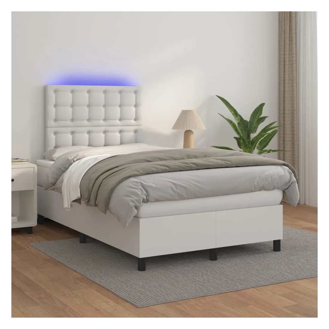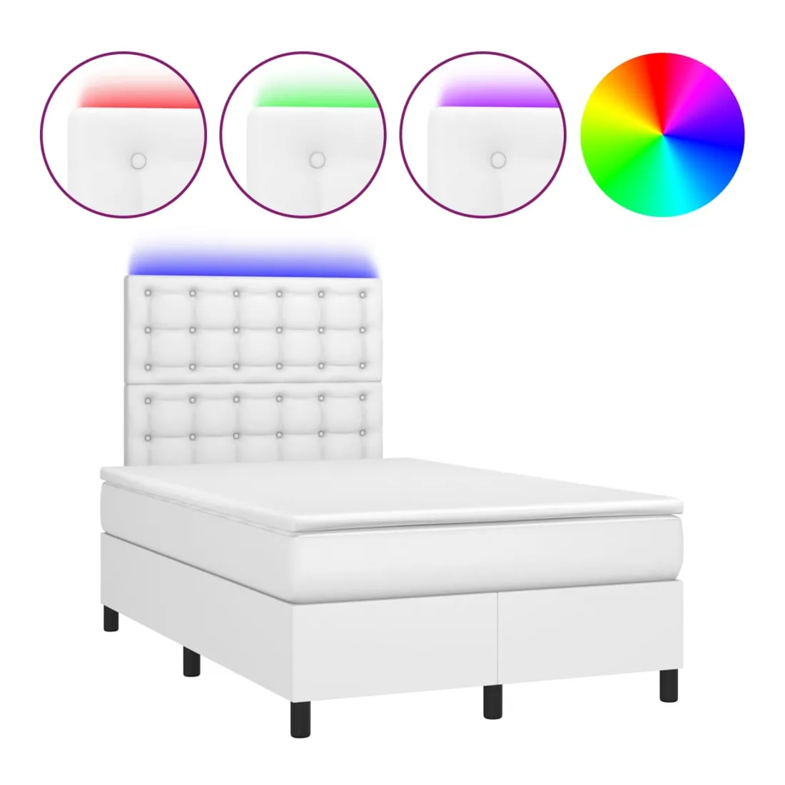 Utilisez ce sommier tapissier avec matelas et LED pour profiter d'un sommeil réparateur ! C'est le point central de votre chambre à coucher. Similicuir durable : le similicuir de qualité supérieure est un matériau très durable. Il est résistant aux taches, ce qui le rend facile à nettoyer avec un chiffon humide. La surface lisse donne également un aspect luxueux et la beauté du cuir véritable.Tête de lit pratique : la tête de lit est réglable en hauteur selon vos préférences. La tête de lit vous offre un excellent soutien du dos lorsque vous êtes assis dans votre lit pour lire ou regarder la télévision.Bande LED colorée : apportez de l'éclairage dans l'obscurité avec des lumières LED colorées !Matelas à ressorts ensachés : le ressort ensaché individuel intégré est connu pour sa très haute qualité tout en assurant un haut niveau de durabilité et d'adaptabilité. Il peut absorber efficacement le bruit et les chocs causés par les sauts et les rotations.Protège-matelas doux pour la peau : le protège-matelas est recouvert d'un tissu résistant et doux pour la peau, ce qui le rend souple et confortable. Remarque :Pour des raisons d'hygiène, le matelas ne peut pas être retourné si l'emballage est retiré ou ouvert.Seule la partie avec un symbole de ciseaux peut être coupée et seule la partie avec l'USB continuera à fonctionner comme avant.Chaque produit est livré avec un manuel de montage dans la boîte pour un montage facile.Ce produit est doté d'un connecteur USB, mais la source d'alimentation certifiée de USB 5V n'est pas incluse.