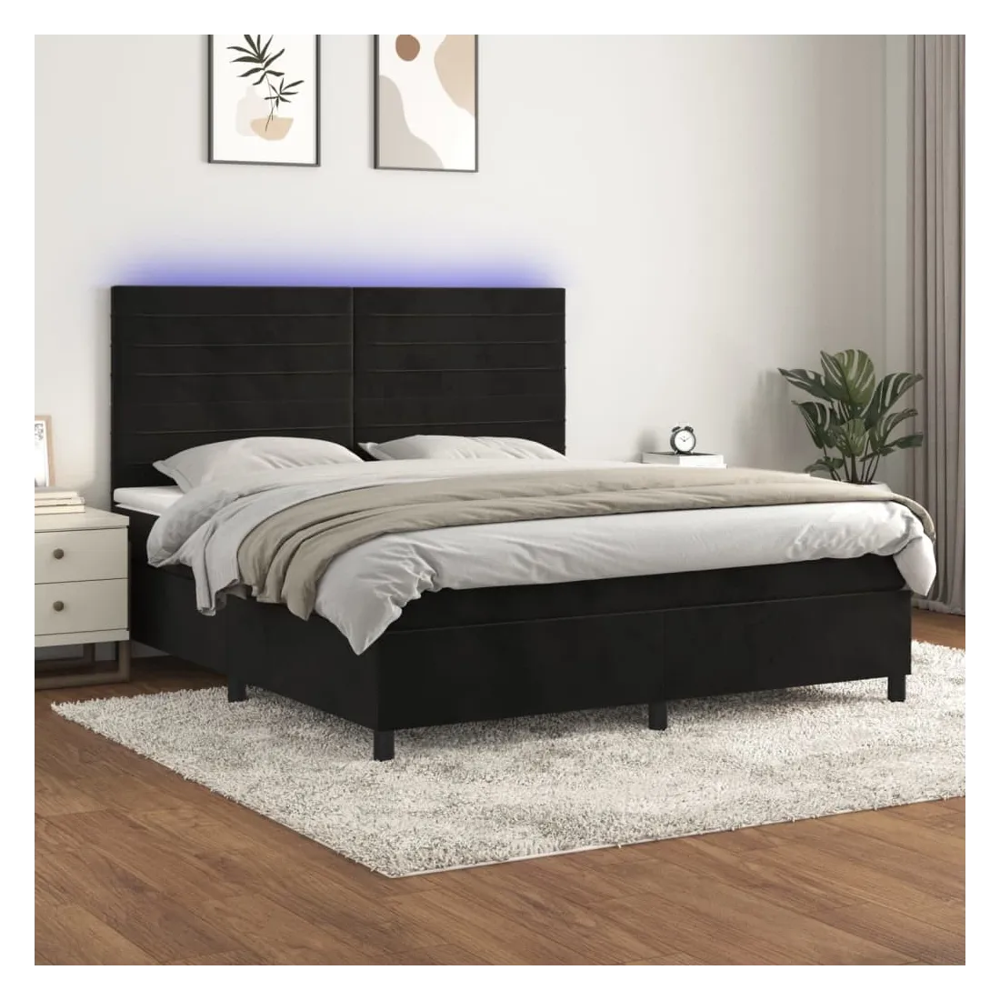 Utilisez ce sommier tapissier avec matelas et LED pour profiter d'un sommeil réparateur ! C'est le point central de votre chambre à coucher. Velours doux : le velours est un tissu doux et luxueux qui se reconnaît à son tas dense de fibres uniformément coupées qui ont une touche lisse. Le tissu en velours présente un toucher doux distinctif, ce qui le rend confortable au toucher.Tête de lit pratique : la tête de lit est réglable en hauteur selon vos préférences. La tête de lit vous offre un excellent soutien du dos lorsque vous êtes assis dans votre lit pour lire ou regarder la télévision.Bande LED colorée : apportez de l'éclairage dans l'obscurité avec des lumières LED colorées !Matelas à ressorts ensachés : le ressort ensaché individuel intégré est connu pour sa très haute qualité tout en assurant un haut niveau de durabilité et d'adaptabilité. Il peut absorber efficacement le bruit et les chocs causés par les sauts et les rotations.Protège-matelas doux pour la peau : le protège-matelas est recouvert d'un tissu résistant et doux pour la peau, ce qui le rend souple et confortable. Remarque :Pour des raisons d'hygiène, le matelas ne peut pas être retourné si l'emballage est retiré ou ouvert.Seule la partie avec un symbole de ciseaux peut être coupée et seule la partie avec l'USB continuera à fonctionner comme avant.Chaque produit est livré avec un manuel de montage dans la boîte pour un montage facile.Ce produit est doté d'un connecteur USB, mais la source d'alimentation certifiée de USB 5V n'est pas incluse.