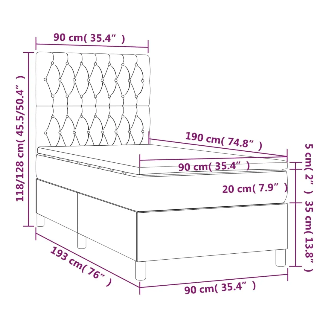 90 x 190 cm