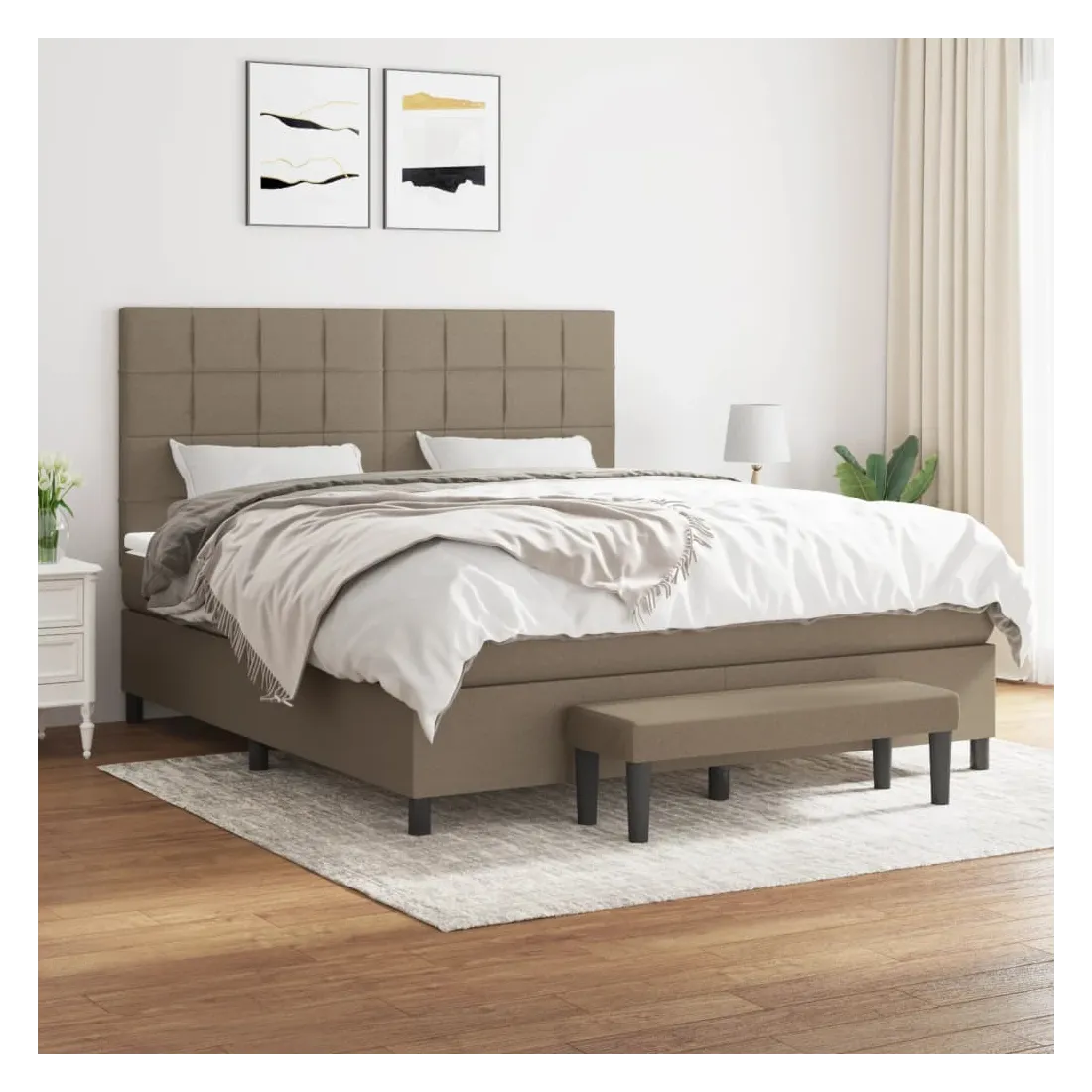 Utilisez ce lit à sommier pour profiter d'une nuit de sommeil réparatrice ! Il vous offre une relaxation maximale et un sommeil agréable. Tissu durable : le tissu présente un aspect simple et épuré, et il est respirant et durable.Tête de lit pratique : la tête de lit est réglable en hauteur selon vos préférences. La tête de lit vous offre un excellent soutien du dos lorsque vous êtes assis dans votre lit pour lire ou regarder la télévision.Matelas à ressorts ensachés : le ressort ensaché individuel intégré est connu pour sa très haute qualité tout en assurant un haut niveau de durabilité et d'adaptabilité. Il peut absorber efficacement le bruit et les chocs causés par les sauts et les rotations.Support moyen-dur : ce matelas de lit offre une stabilité accrue et juste le niveau de fermeté sans sacrifier le confort. Il est donc idéal pour les personnes qui dorment sur le dos ou sur le ventre.Protège-matelas doux pour la peau : le protège-matelas est recouvert d'un tissu résistant et doux pour la peau, ce qui le rend souple et confortable.Banc multifonctionnel : ce banc peut servir de siège supplémentaire dans votre maison. Il peut également être utilisé comme banc de bout de lit. Remarque :Pour des raisons d'hygiène, le matelas ne peut pas être retourné si l'emballage est retiré ou ouvert.Chaque produit est livré avec un manuel de montage dans la boîte pour un montage facile.
