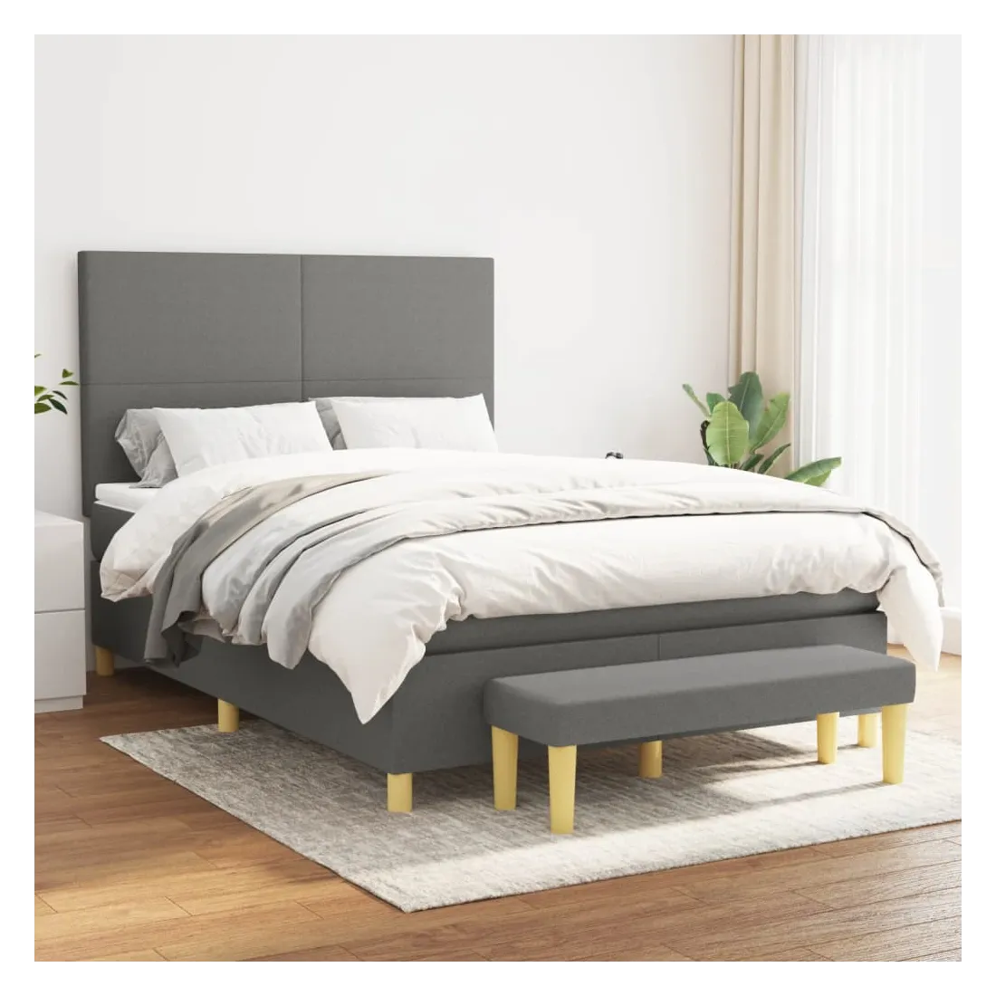 vidaXLUtilisez ce lit à sommier pour profiter d'une nuit de sommeil réparatrice ! Il vous offre une relaxation maximale et un sommeil agréable. Tissu durable : le tissu présente un aspect simple et épuré, et il est respirant et durable.Tête de lit pratique : la tête de lit est réglable en hauteur selon vos préférences. La tête de lit vous offre un excellent soutien du dos lorsque vous êtes assis dans votre lit pour lire ou regarder la télévision.Matelas à ressorts ensachés : le ressort ensaché individuel intégré est connu pour sa très haute qualité tout en assurant un haut niveau de durabilité et d'adaptabilité. Il peut absorber efficacement le bruit et les chocs causés par les sauts et les rotations.Support moyen-dur : ce matelas de lit offre une stabilité accrue et juste le niveau de fermeté sans sacrifier le confort. Il est donc idéal pour les personnes qui dorment sur le dos ou sur le ventre.Protège-matelas doux pour la peau : le protège-matelas est recouvert d'un tissu résistant et doux pour la peau, ce qui le rend souple et confortable.Banc multifonctionnel : ce banc peut servir de siège supplémentaire dans votre maison. Il peut également être utilisé comme banc de bout de lit. Remarque :Pour des raisons d'hygiène, le matelas ne peut pas être retourné si l'emballage est retiré ou ouvert.Chaque produit est livré avec un manuel de montage dans la boîte pour un montage facile.