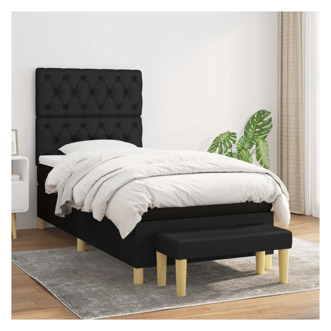 Utilisez ce lit à sommier pour profiter d'une nuit de sommeil réparatrice ! Il vous offre une relaxation maximale et un sommeil agréable. Tissu durable : le tissu présente un aspect simple et épuré, et il est respirant et durable.Tête de lit pratique : la tête de lit est réglable en hauteur selon vos préférences. La tête de lit vous offre un excellent soutien du dos lorsque vous êtes assis dans votre lit pour lire ou regarder la télévision.Matelas à ressorts ensachés : le ressort ensaché individuel intégré est connu pour sa très haute qualité tout en assurant un haut niveau de durabilité et d'adaptabilité. Il peut absorber efficacement le bruit et les chocs causés par les sauts et les rotations.Support moyen-dur : ce matelas de lit offre une stabilité accrue et juste le niveau de fermeté sans sacrifier le confort. Il est donc idéal pour les personnes qui dorment sur le dos ou sur le ventre.Protège-matelas doux pour la peau : le protège-matelas est recouvert d'un tissu résistant et doux pour la peau, ce qui le rend souple et confortable.Banc multifonctionnel : ce banc peut servir de siège supplémentaire dans votre maison. Il peut également être utilisé comme banc de bout de lit. Remarque :Pour des raisons d'hygiène, le matelas ne peut pas être retourné si l'emballage est retiré ou ouvert.Chaque produit est livré avec un manuel de montage dans la boîte pour un montage facile.