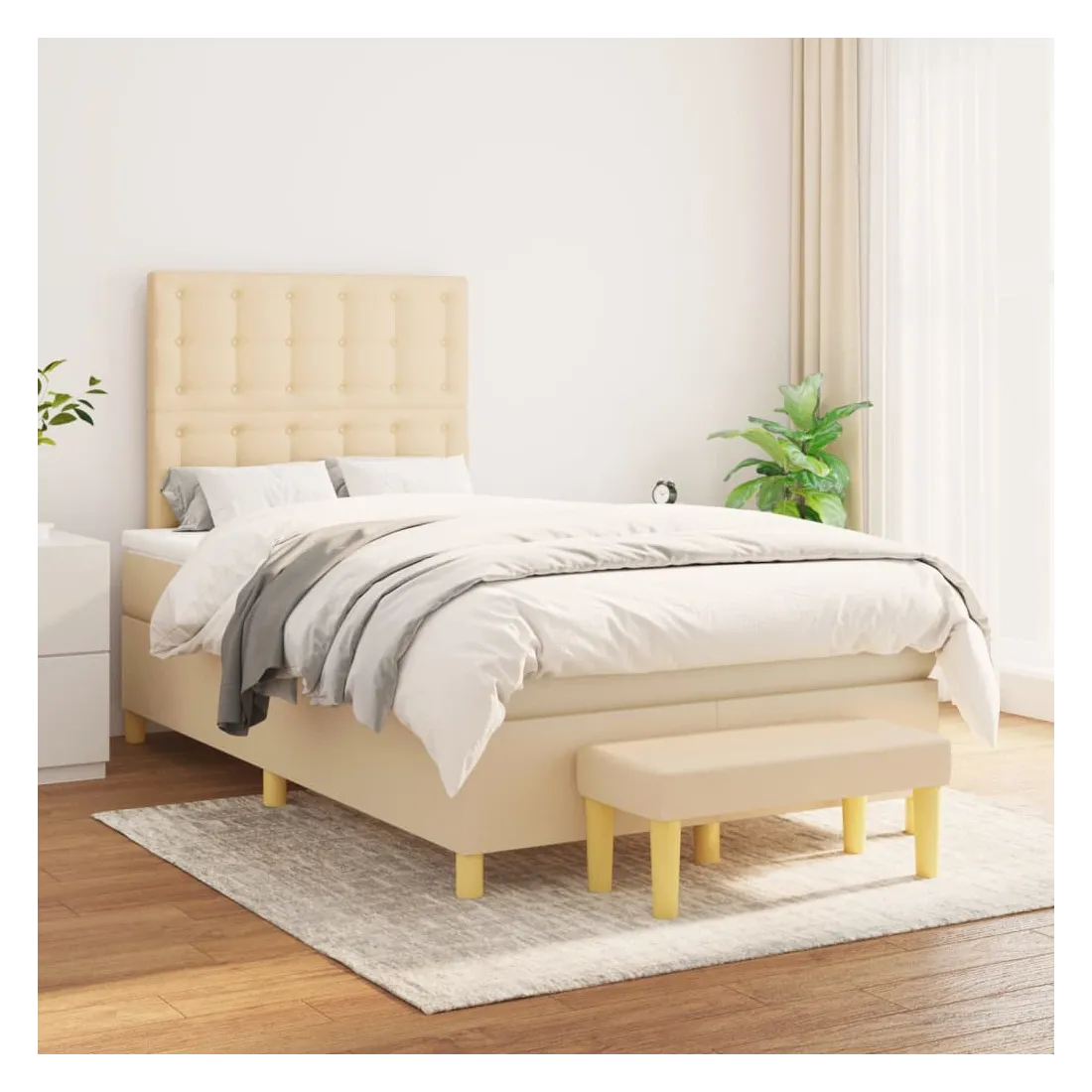 Sommier à lattes de lit avec matelas Crème 120x200 cm Tissu