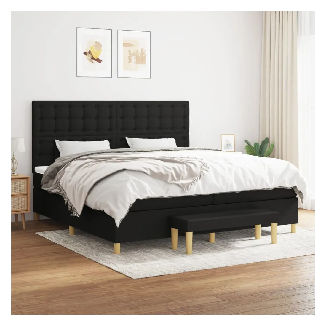 Utilisez ce lit à sommier pour profiter d'une nuit de sommeil réparatrice ! Il vous offre une relaxation maximale et un sommeil agréable. Tissu durable : le tissu présente un aspect simple et épuré, et il est respirant et durable.Tête de lit pratique : la tête de lit est réglable en hauteur selon vos préférences. La tête de lit vous offre un excellent soutien du dos lorsque vous êtes assis dans votre lit pour lire ou regarder la télévision.Matelas à ressorts ensachés : le ressort ensaché individuel intégré est connu pour sa très haute qualité tout en assurant un haut niveau de durabilité et d'adaptabilité. Il peut absorber efficacement le bruit et les chocs causés par les sauts et les rotations.Support moyen-dur : ce matelas de lit offre une stabilité accrue et juste le niveau de fermeté sans sacrifier le confort. Il est donc idéal pour les personnes qui dorment sur le dos ou sur le ventre.Protège-matelas doux pour la peau : le protège-matelas est recouvert d'un tissu résistant et doux pour la peau, ce qui le rend souple et confortable.Banc multifonctionnel : ce banc peut servir de siège supplémentaire dans votre maison. Il peut également être utilisé comme banc de bout de lit. Remarque :Pour des raisons d'hygiène, le matelas ne peut pas être retourné si l'emballage est retiré ou ouvert.Chaque produit est livré avec un manuel de montage dans la boîte pour un montage facile.