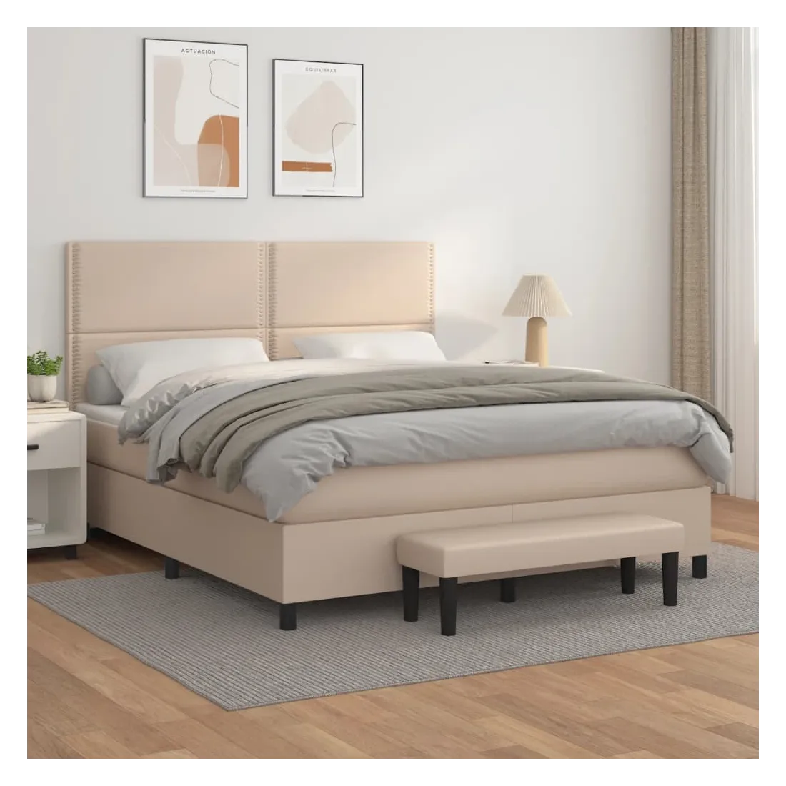 Utilisez ce lit à sommier pour profiter d'une nuit de sommeil réparatrice ! Il vous offre une relaxation maximale et un sommeil agréable. Similicuir durable : le similicuir de qualité supérieure est un matériau très durable. Il est résistant aux taches, ce qui le rend facile à nettoyer avec un chiffon humide. La surface lisse donne également un aspect luxueux et la beauté du cuir véritable.Tête de lit pratique : la tête de lit est réglable en hauteur selon vos préférences. La tête de lit vous offre un excellent soutien du dos lorsque vous êtes assis dans votre lit pour lire ou regarder la télévision.Matelas à ressorts ensachés : le ressort ensaché individuel intégré est connu pour sa très haute qualité tout en assurant un haut niveau de durabilité et d'adaptabilité. Il peut absorber efficacement le bruit et les chocs causés par les sauts et les rotations.Support moyen-dur : ce matelas de lit offre une stabilité accrue et juste le niveau de fermeté sans sacrifier le confort. Il est donc idéal pour les personnes qui dorment sur le dos ou sur le ventre.Protège-matelas doux pour la peau : le protège-matelas est recouvert d'un tissu résistant et doux pour la peau, ce qui le rend souple et confortable.Banc multifonctionnel : ce banc peut servir de siège supplémentaire dans votre maison. Il peut également être utilisé comme banc de bout de lit. Remarque :Pour des raisons d'hygiène, le matelas ne peut pas être retourné si l'emballage est retiré ou ouvert.Chaque produit est livré avec un manuel de montage dans la boîte pour un montage facile.