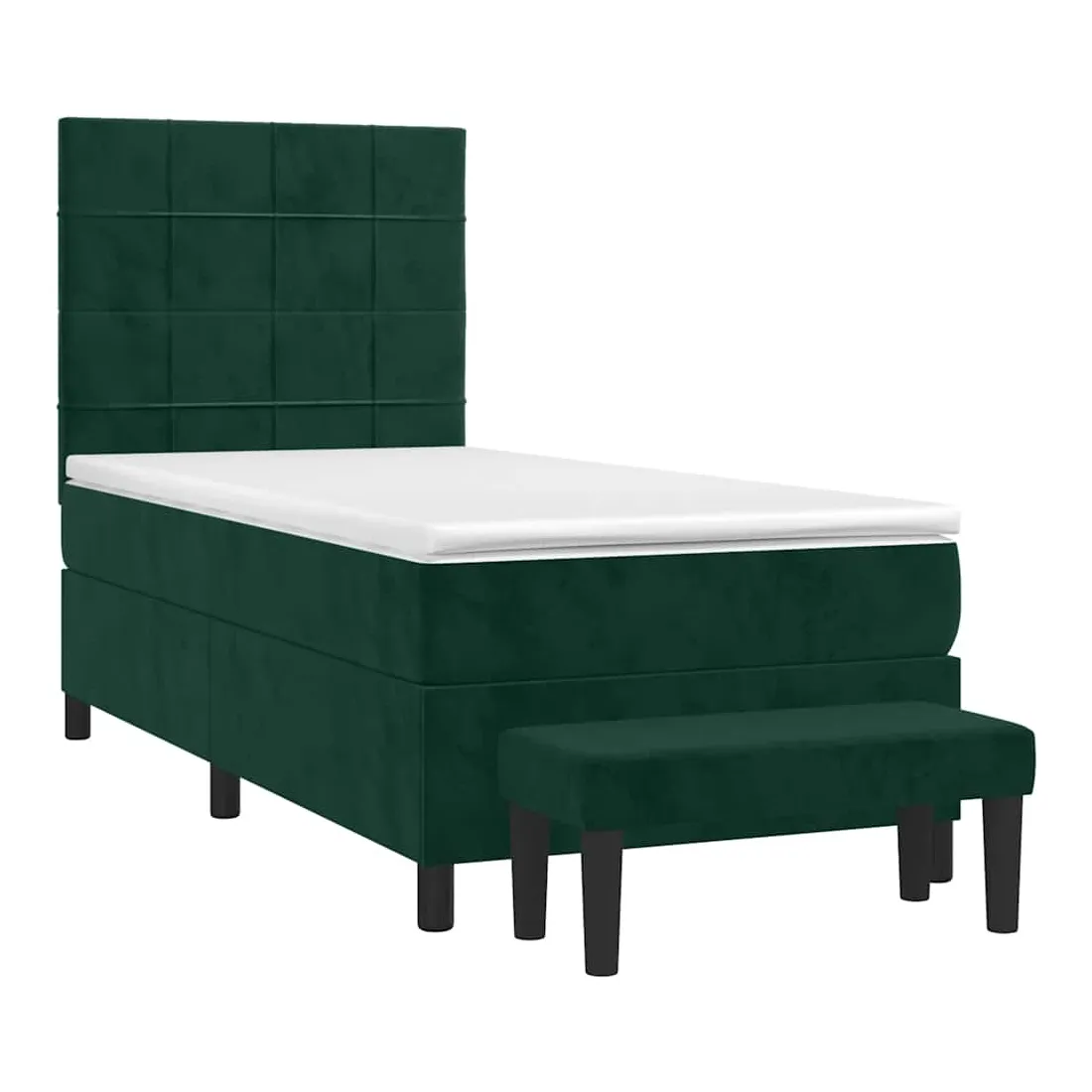 Utilisez ce lit à sommier pour profiter d'une nuit de sommeil réparatrice ! Il vous offre une relaxation maximale et un sommeil agréable. Velours doux : le velours est un tissu doux et luxueux qui se reconnaît à son tas dense de fibres uniformément coupées qui ont une touche lisse. Le tissu en velours présente un toucher doux distinctif, ce qui le rend confortable au toucher.Tête de lit pratique : la tête de lit est réglable en hauteur selon vos préférences. La tête de lit vous offre un excellent soutien du dos lorsque vous êtes assis dans votre lit pour lire ou regarder la télévision.Matelas à ressorts ensachés : le ressort ensaché individuel intégré est connu pour sa très haute qualité tout en assurant un haut niveau de durabilité et d'adaptabilité. Il peut absorber efficacement le bruit et les chocs causés par les sauts et les rotations.Support moyen-dur : ce matelas de lit offre une stabilité accrue et juste le niveau de fermeté sans sacrifier le confort. Il est donc idéal pour les personnes qui dorment sur le dos ou sur le ventre.Protège-matelas doux pour la peau : le protège-matelas est recouvert d'un tissu résistant et doux pour la peau, ce qui le rend souple et confortable.Banc multifonctionnel : ce banc peut servir de siège supplémentaire dans votre maison. Il peut également être utilisé comme banc de bout de lit. Remarque :Pour des raisons d'hygiène, le matelas ne peut pas être retourné si l'emballage est retiré ou ouvert.Chaque produit est livré avec un manuel de montage dans la boîte pour un montage facile.