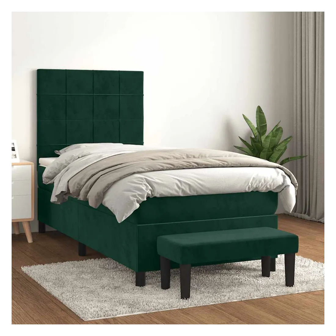Utilisez ce lit à sommier pour profiter d'une nuit de sommeil réparatrice ! Il vous offre une relaxation maximale et un sommeil agréable. Velours doux : le velours est un tissu doux et luxueux qui se reconnaît à son tas dense de fibres uniformément coupées qui ont une touche lisse. Le tissu en velours présente un toucher doux distinctif, ce qui le rend confortable au toucher.Tête de lit pratique : la tête de lit est réglable en hauteur selon vos préférences. La tête de lit vous offre un excellent soutien du dos lorsque vous êtes assis dans votre lit pour lire ou regarder la télévision.Matelas à ressorts ensachés : le ressort ensaché individuel intégré est connu pour sa très haute qualité tout en assurant un haut niveau de durabilité et d'adaptabilité. Il peut absorber efficacement le bruit et les chocs causés par les sauts et les rotations.Support moyen-dur : ce matelas de lit offre une stabilité accrue et juste le niveau de fermeté sans sacrifier le confort. Il est donc idéal pour les personnes qui dorment sur le dos ou sur le ventre.Protège-matelas doux pour la peau : le protège-matelas est recouvert d'un tissu résistant et doux pour la peau, ce qui le rend souple et confortable.Banc multifonctionnel : ce banc peut servir de siège supplémentaire dans votre maison. Il peut également être utilisé comme banc de bout de lit. Remarque :Pour des raisons d'hygiène, le matelas ne peut pas être retourné si l'emballage est retiré ou ouvert.Chaque produit est livré avec un manuel de montage dans la boîte pour un montage facile.