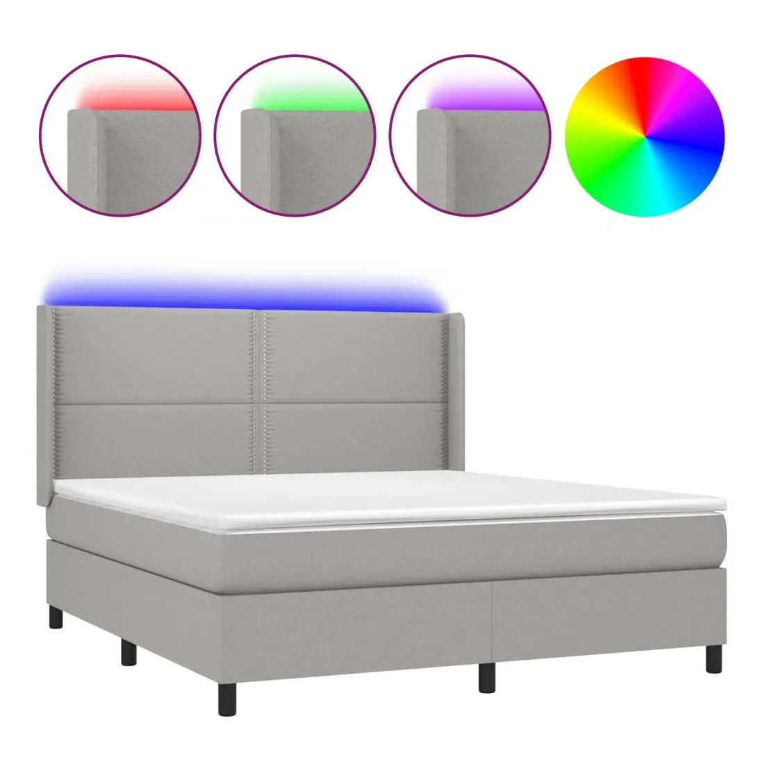 Sommier à lattes de lit matelas LED Gris clair 180x200 cm Tissu