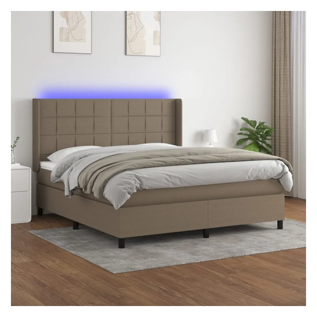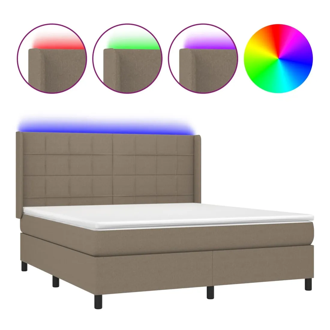 Utilisez ce sommier tapissier avec matelas et LED pour profiter d'un sommeil réparateur ! C'est le point central de votre chambre à coucher. Tissu durable : le tissu présente un aspect simple et épuré, et il est respirant et durable.Tête de lit pratique : la tête de lit est réglable en hauteur selon vos préférences. La tête de lit vous offre un excellent soutien du dos lorsque vous êtes assis dans votre lit pour lire ou regarder la télévision.Bande LED colorée : apportez de l'éclairage dans l'obscurité avec des lumières LED colorées !Matelas à ressorts ensachés : le ressort ensaché individuel intégré est connu pour sa très haute qualité tout en assurant un haut niveau de durabilité et d'adaptabilité. Il peut absorber efficacement le bruit et les chocs causés par les sauts et les rotations.Protège-matelas doux pour la peau : le protège-matelas est recouvert d'un tissu résistant et doux pour la peau, ce qui le rend souple et confortable. Remarque :Pour des raisons d'hygiène, le matelas ne peut pas être retourné si l'emballage est retiré ou ouvert.Seule la partie avec un symbole de ciseaux peut être coupée et seule la partie avec l'USB continuera à fonctionner comme avant.Chaque produit est livré avec un manuel de montage dans la boîte pour un montage facile.Ce produit est doté d'un connecteur USB, mais la source d'alimentation certifiée de USB 5V n'est pas incluse.